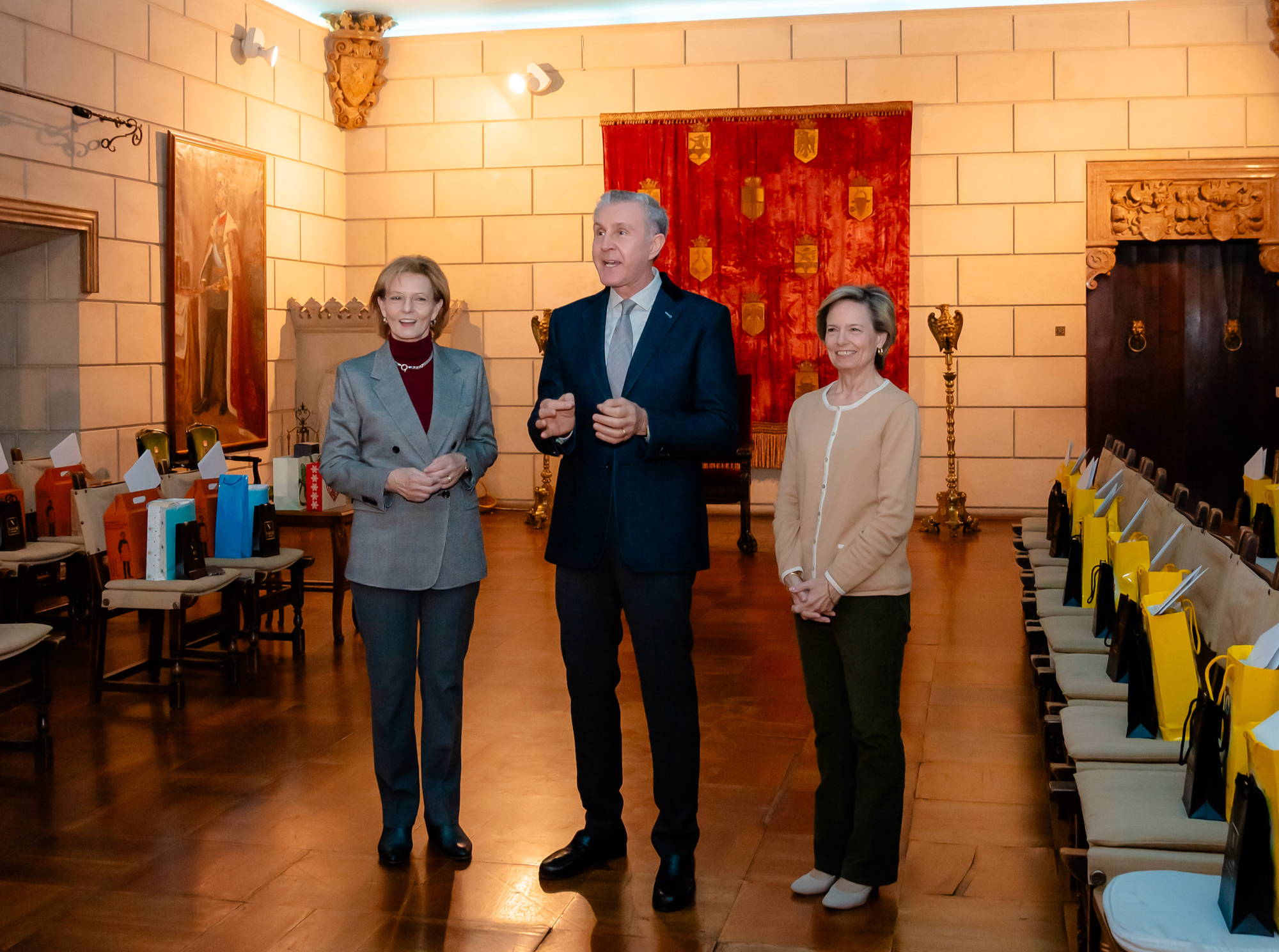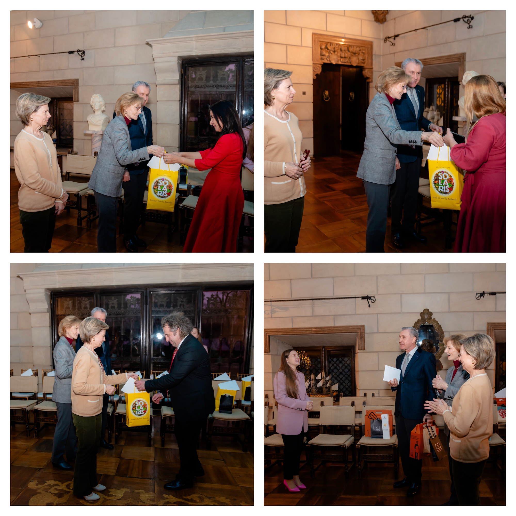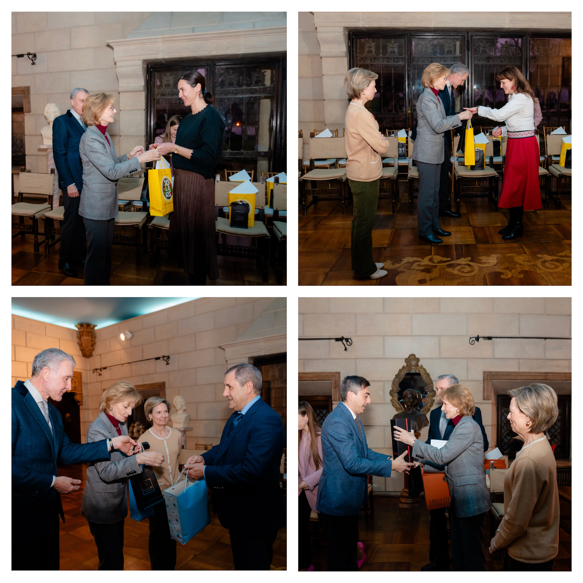 ![]() În Sala Regilor, Custodele Coroanei, Principele Radu și Principesa Sofia au oferit cadouri de Crăciun angajaților și colaboratorilor Asociației Casa Majestății Sale, Administrației Proprietăților Regale și Fundaţiei Regale Margareta a României. ![]() Tradiția de a oferi cadouri de Crăciun angajaților Casei Majestății Sale își are rădăcinile în anul 1866, când Principele Suveran Carol I a oferit primele daruri personalului Casei Civile și Casei Militare. Ulterior, timp de aproape cinci decenii, Regele Carol I și Regina Elisabeta au răsplătit munca, onestitatea, ambiția și devotamentul de care angajații dădeau dovadă pe tot parcursul anului. Tradiția a fost continuată de către Regele Ferdinand și Regina Maria, apoi de către Regele Carol al II-lea, Regina Elena, Regele Mihai și Regina Ana, chiar și în anii de exil. Din momentul în care Familia Regală a revenit în România, ceremonia are loc la Palatul Elisabeta, în luna decembrie, urmând, ca ulterior, ea să se repete la Castelul Săvârșin, pentru angajații Fundației Regale pentru Patrimoniu și Dezvolotare și ai Ocolului Silvic Regal. ![]() ![]() ![]() ![]() ![]() ![]() ![]() ![]() ![]() ![]() ![]() ![]() ![]() ![]() ©Daniel Angelescu ©Alexandra Curea-Gogu, Casa Majestății Sale |