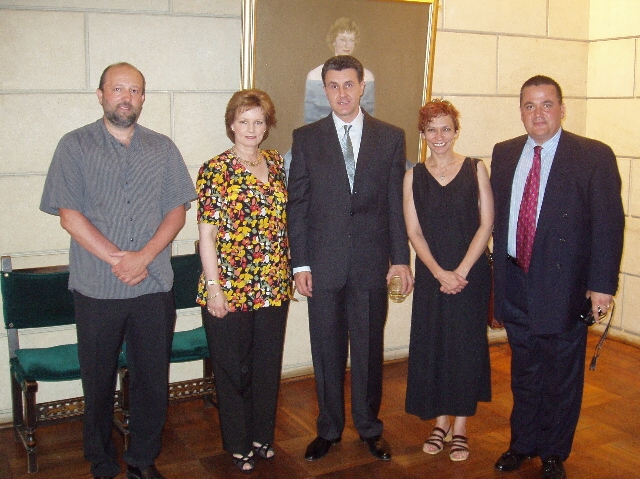 ![]() Miercuri 30 iunie 2004, ASR Principesa Margareta și AS Principele Radu au primit la Palatul Elisabeta absolvenții promoției 1984 ai Institutului de Arta Teatrală și Cinematografică, colegi ai Principelui Radu. Au luat parte profesorii Sanda Manu, Olga Tudorache, Geta Angheluță, Adriana Popovici, Maria Dumitrache-Caraman, Ștefan Velniciuc, Alexandru Lazar, Sergiu Pop, Amelia Kreutzer, Gheorghe Ceaușu, Victor Grama și absolvenții anului 1984, Oana Pellea, Carmen Tănase, Carmen Ciorcilă, Carmen Trocan, Mioara Ifrim, Marina Procopie, Patricia Grigoriu, Mihai Verbițchi, Adrian Păduraru, Dan Bădărău, Bogdan Gheorghiu, Cristian Rotaru. Au fost prezenți membri ai corpului tehnic al studioului Cassandra. În dimineața de miercuri, absolvenții și foștii profesori s-au întâlnit la Studioul Cassandra al IATC, teatrul în care, în stagiunea 1983-1984, clasele Sanda Manu și Olga Tudorache au jucat spectacolele “Suflete tari” de Camil Petrescu, “Bună seara, domnule Wilde”, “Joia dulce” după John Steinbeck și “O noapte furtunoasă” de Ion Luca Caragiale. ![]() ![]() ![]() ![]() ![]() |