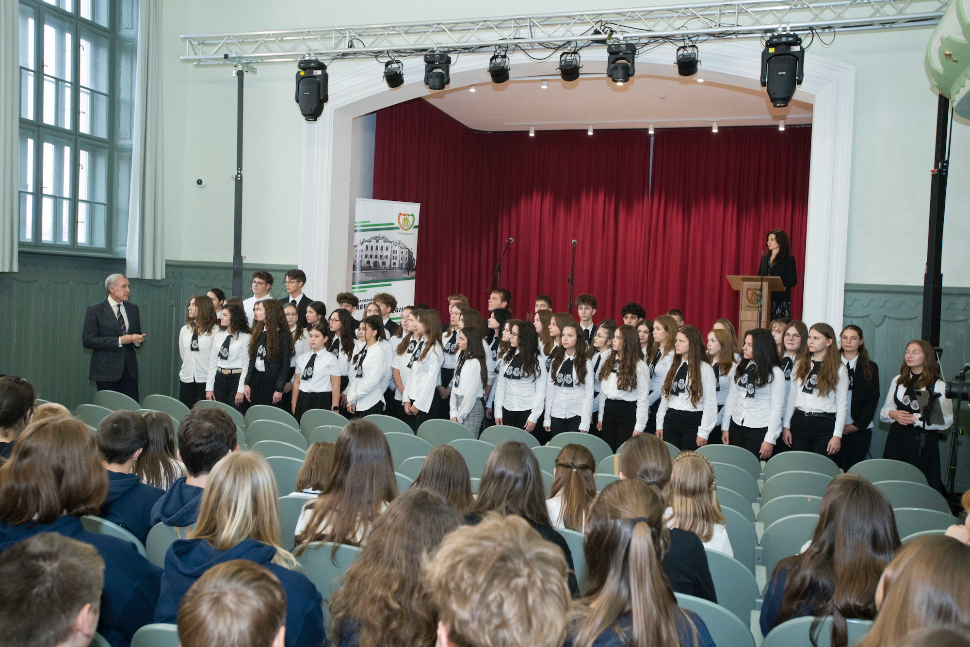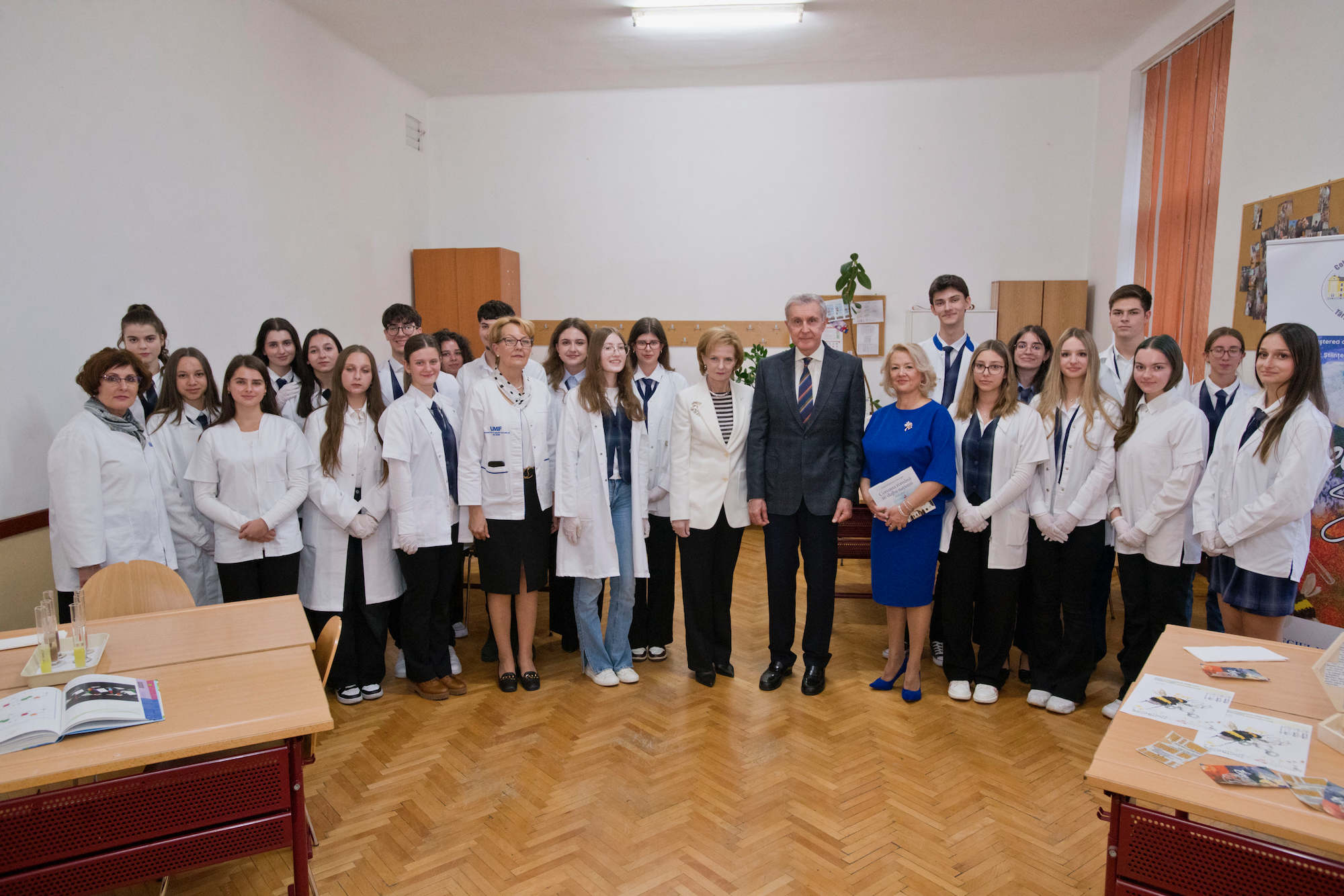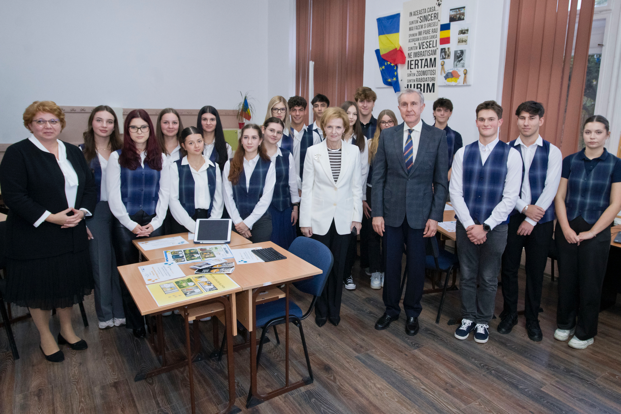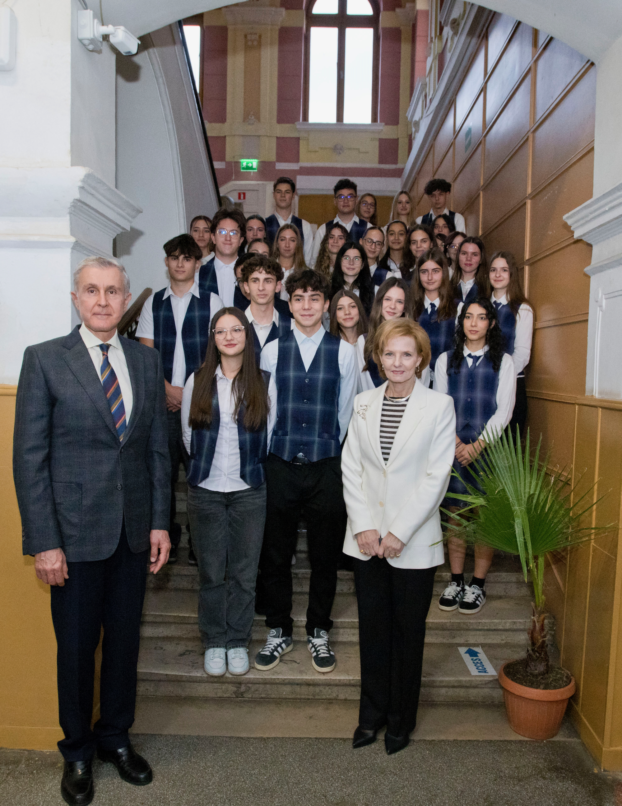 ![]() După-amiază, Custodele Coroanei și Principele Radu au vizitat Liceul Vocațional Reformat din Târgu Mureș, una dintre cele mai vechi instituții de învățământ din Transilvania, fondată în anul 1556. Oaspeții regali au fost întâmpinați de directorul Benedek Zsolt, care le-a prezentat istoria liceului și piatra de temelie expusă la etajul I al clădirii. În sala istorică de festivități, Majestatea Sa și Alteța Sa Regală s-au întâlnit cu elevii și profesorii liceului. Programul a cuprins un moment artistic susținut de ansamblul coral al școlii, precum și de elevi de la profilul teologic, care au cântat la fluier baroc, instrument tradițional reintrodus în repertoriul educațional. Familia Regală a adresat audienței un cuvânt de mulțumire și a adus felicitări profesorilor și elevilor, pentru felul exemplar în care duc mai departe credința, educația și o tradiție de cinci secole. Pe parcursul vizitei, Custodele Coroanei și Principele Radu au vizitat laboratoarele moderne ale școli și spațiile de învățământ în care actualmente sunt pregătiți peste 700 de elevi, de la vârsta preșcolară până la studiile post-liceale. AGERPRES În continuare, Custodele Coroanei și Principele Radu au vizitat Colegiul Național „Unirea” din Târgu Mureș, liceu de prestigiu înființat în secolul al XIX-lea, recunoscut pentru calitatea academică și pentru activitatea internațională a elevilor și profesorilor săi. Oaspeții au fost întâmpinați de directorul Aurora Manuela Stănescu. Majestatea Sa și Alteța Sa Regală au vizitat Cercul de Robotică „Hardwired: Tehnologia CN unește”, unde elevii au prezentat activitățile cercului și au realizat o demonstrație practică. În continuare, a urmat vizitarea Centrului de excelență în biologie, unde s-a desfășurat un scurt „maraton experimental”, și prezentarea proiectelor europene Erasmus+ și eTwinning, prin care elevii își dezvoltă competențele științifice și spiritul de colaborare internațională. De asemenea, Majestatea Sa și Alteța Sa Regală au asistat la o lecție de Debate, pe tema „Monarhia – instituție a trecutului sau model pentru viitor?” Pe parcursul vizitei, Familia Regală a dialogat cu profesorii, cu elevii din diferite clase liceale și au vizitat vastele spații de învățământ ale instituției. Pe holurile colegiului au fost amenajate standuri de carte și expoziții dedicate proiectelor educaționale europene în care instituția este implicată. Vizita s-a încheiat seara, cu o fotografie de grup, cuprinzând marea familie a elevilor de toate vârstele și a profesorilor. Liceul Vocațional Reformat ![]() ![]() ![]() ![]() ![]() ![]() ![]() ![]() ![]() Colegiul Național “Unirea” ![]() ![]() ![]() ![]() ![]() ![]() ![]() ![]() ![]() ![]() ©Daniel Angelescu, Casa Majestății Sale |