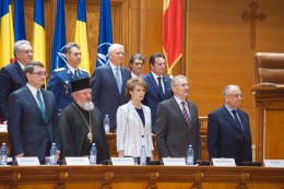 Imagini de la un moment de însemnătate istorică pentru România. Alteța Sa Regală Principesa Moștenitoare reprezintă pe Majestatea Sa Regele în Sesiunea Solemnă a Camerelor reunite ale Parlamentului României pentru a sărbători zece ani de la intrarea României în NATO….