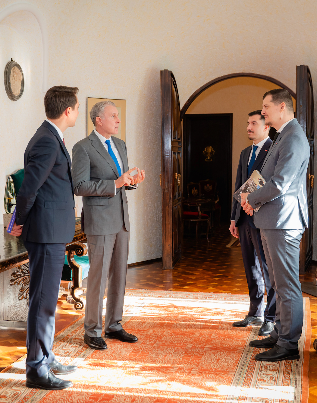 În numele Majestății Sale Custodele Coroanei, Alteța Sa Regală Principele Radu a primit pe domnul Valentin Ștefan, director general al Poștei Române. La întrevedere au participat, de asemenea, domnul Cristian Dorobanțu și domnul Mihnea Bogdan Croitoru. ![]() ![]() ![]() ©Alexandra Curea-Gogu, Casa Majestății Sale |