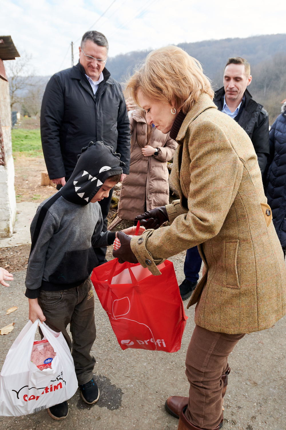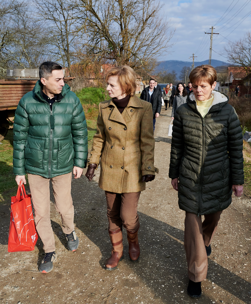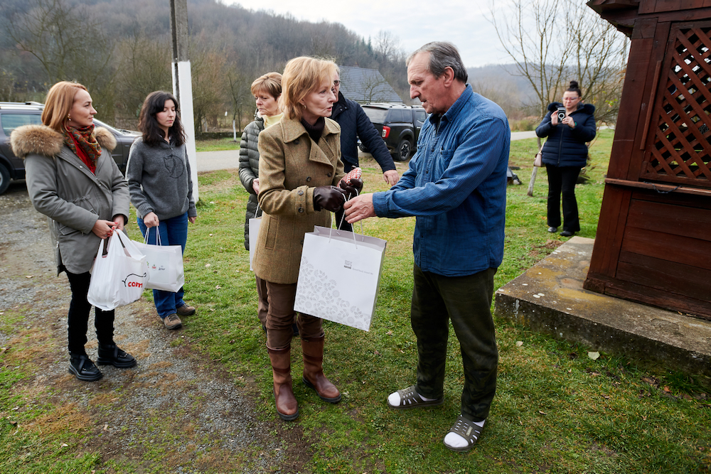 ![]() Sâmbătă, 20 decembrie 2025, Majestatea Sa Margareta a oferit, ca în fiecare an, daruri de Crăciun săvârșinenilor aflați în nevoie sau în suferință. Majestatea Sa a fost însoțită de ASR Principesa Elena și de membri ai Casei Majestății Sale. Această tradiție datează din anii 1940, când Regina-mamă Elena și Regele Mihai petreceau sfârșitul de an la Săvârșin. Tradiția a fost continuată de Regele Mihai și de Regina Ana, în anii 2001-2014. Cadourile de Crăciun din acest an au fost pregătite de Fundația Colecția Regală cu sprijinul generos al companiilor Profi România, Procter & Gamble, Comtim, Nestle, Banca Transilvania și Biroul Asiguratorilor de Autovehicule din România. Au fost prezenți domnul Goran Panici, director general Comtim România, doamna Silvia Sticlea, CEO Nestlé România, doamna Dana Brindescu Iovanov, Comtim, și domnul primar Ioan Vodicean. ![]() ![]() ![]() ![]() ![]() ![]() ![]() ©Daniel Angelescu, Casa Majestății Sale |