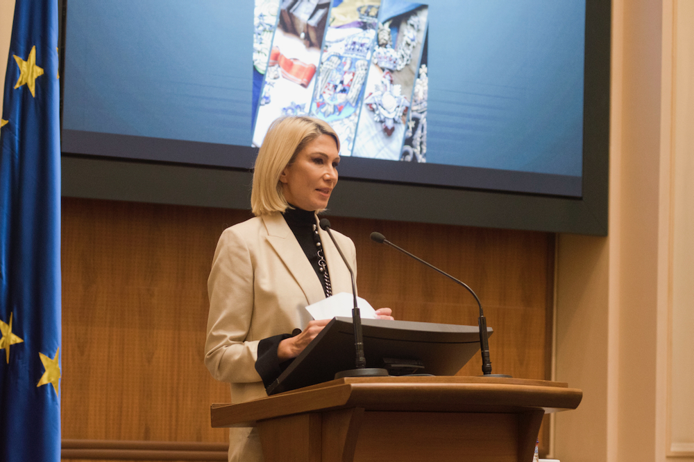 ![]() Joi, 7 decembrie 2023, Majestatea Sa Custodele Coroanei și Alteța Sa Regală Principele Consort au trecut pragul Palatului Băncii Naționale a României pentru a sărbători împlinirea a 100 de ani de la fondarea Muzeului Militar Național „Regele Ferdinand I”. HISTOIRES ROYALES Cu prilejul aniversării, Banca Națională a emis o monedă de argint destinată colecționării. Alături de guvernatorul Băncii Naționale, academicianul Mugur Isărescu, de Majestatea Sa și de Principele Consort s-au aflat președintele Senatului României, domnul Nicolae Ciucă, președintele Curții Constituționale, domnul Marian Enache, ministrul Culturii, doamna Raluca Turcan, înalți reprezentanți ai Administrației Prezidențiale și Guvernului, șeful Statului Major al Apărării, generalul Gheorghiță Vlad, Preasfinția Sa Episcopul Vicar Patriarhal Varlaam și personalități ale societății civile. Despre centenarul muzeului militar a vorbit directorul instituției, colonelul Radu Riti. După lansarea monedei de argint, Banca Națională a invitat oaspeții să admire un exercițiu de îndemânare cu arma, susținut de Brigada 30 Gardă Mihai Viteazul. În ultima parte a evenimentului, invitații au admirat expoziția dedicată centenarului muzeului, organizată de Banca Națională și de Muzeul Militar Național. ![]() ![]() ![]() ![]() ![]() ![]() ![]() ![]() ![]() ![]() ![]() ©Daniel Angelescu, Casa Majestății Sale |