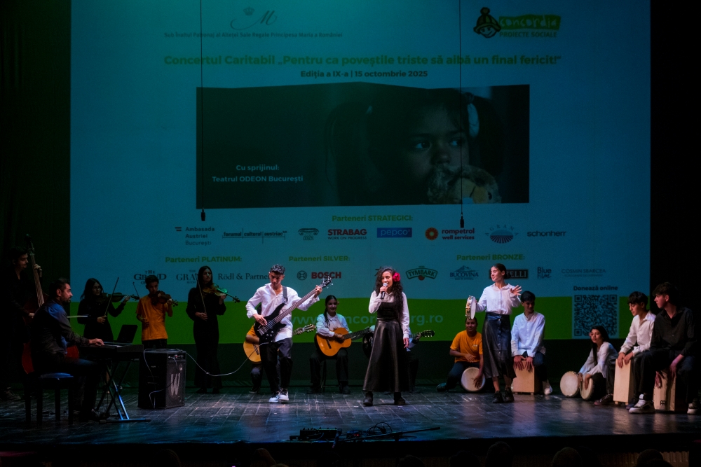 ![]() Miercuri, 15 octombrie 2025, Alteța Sa Regală Principesa Maria a participat la cea de-a IX-a ediție a Concertului Caritabil „Pentru ca poveștile triste să aibă un final fericit!”, organizat de Organizația Umanitară Concordia, la Teatrul Odeon, din București. HISTOIRES ROYALES Concertul a avut ca scop strângerea de fonduri pentru sprijinirea a 150 de copii proveniți din familii vulnerabile, beneficiari ai Centrelor de Zi Concordia, unde aceștia primesc sprijin educațional, consiliere, masă caldă și activități menite să prevină abandonul școlar. La eveniment au fost prezenți reprezentanți ai corpului diplomatic, parteneri și susținători ai organizației, alături de Diana Certan, Director Executiv Concordia România și Excelența Sa Doamna Ulla Krauss-Nussbaumer, Ambasadorul Austriei la București. Concertul a adus pe scenă momente artistice de excepție: Theo Rose, Avin Ahmadi din Austria, invitată cu sprijinul Forumului Cultural Austriac, precum și copiii din programele Concordia, coordonați de prof. Teodora Banu Nistoroiuși prof. Lucian Duță. Publicul s-a bucurat de interpretări pline de energie, sensibilitate și speranță, sub gazda serii, jurnalista Irina Păcurariu. Evenimentul s-a desfășurat sub Înaltul Patronaj al Alteței Sale Regale Principesa Maria, acordat Organizației Umanitare Concordia în anul 2015, aniversând în acest an zece ani de sprijin regal neîntrerupt pentru misiunea organizației. CONCORDIA este o organizație neguvernamentală internațională, independentă, dedicată sprijinirii copiilor, tinerilor și familiilor aflate în nevoie, pentru o viață autonomă și responsabilă. Proiectele sale se desfășoară în București, județul Prahova (Ploiești și Ariceștii Rahtivani) și județul Dâmbovița (comuna Odobești), adresându-se anual unui număr de peste 2.000 de persoane. ![]() ![]() ![]() ![]() ![]() ![]() ![]() ![]() ![]() ![]() ©Daniel Angelescu, Casa Majestății Sale |