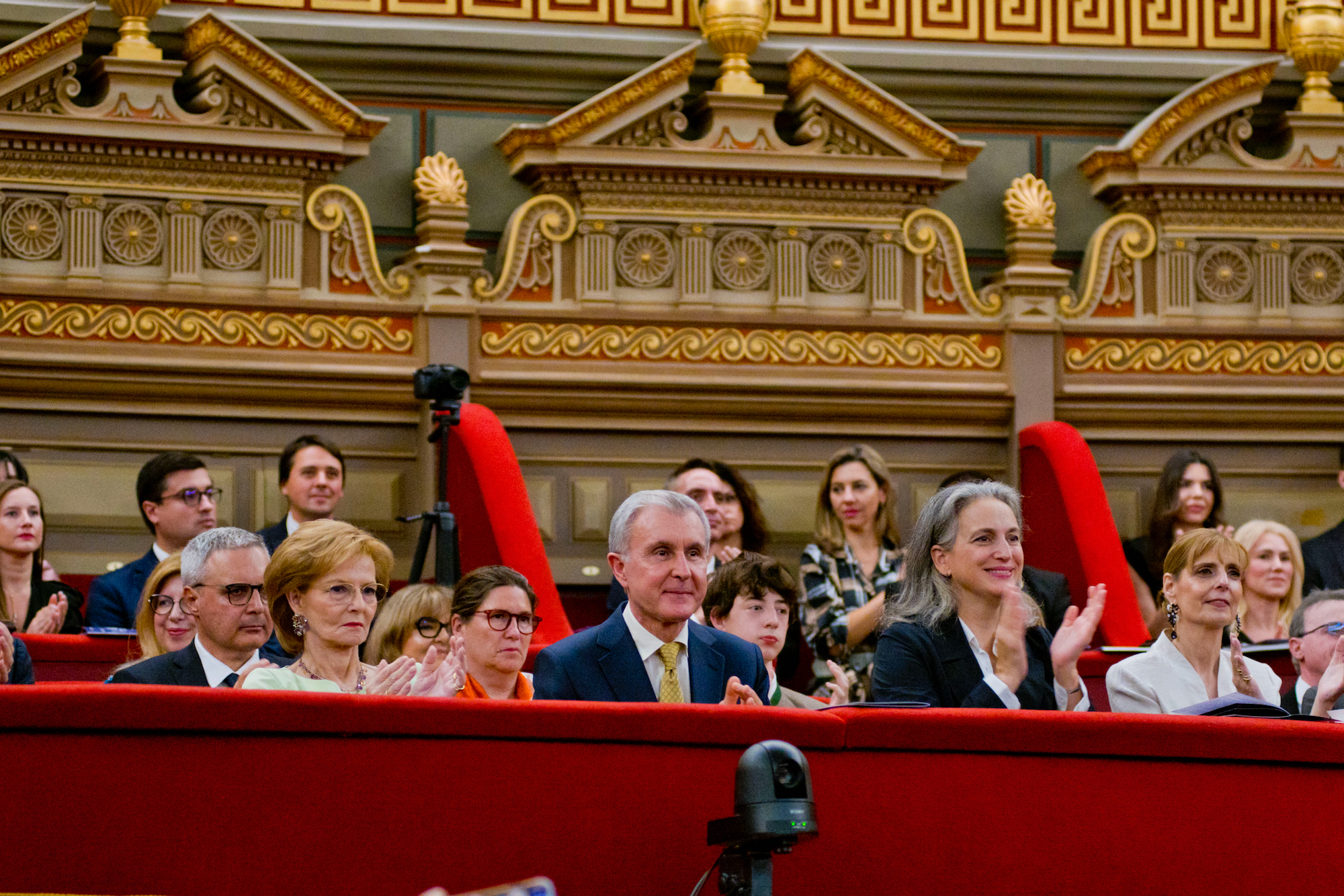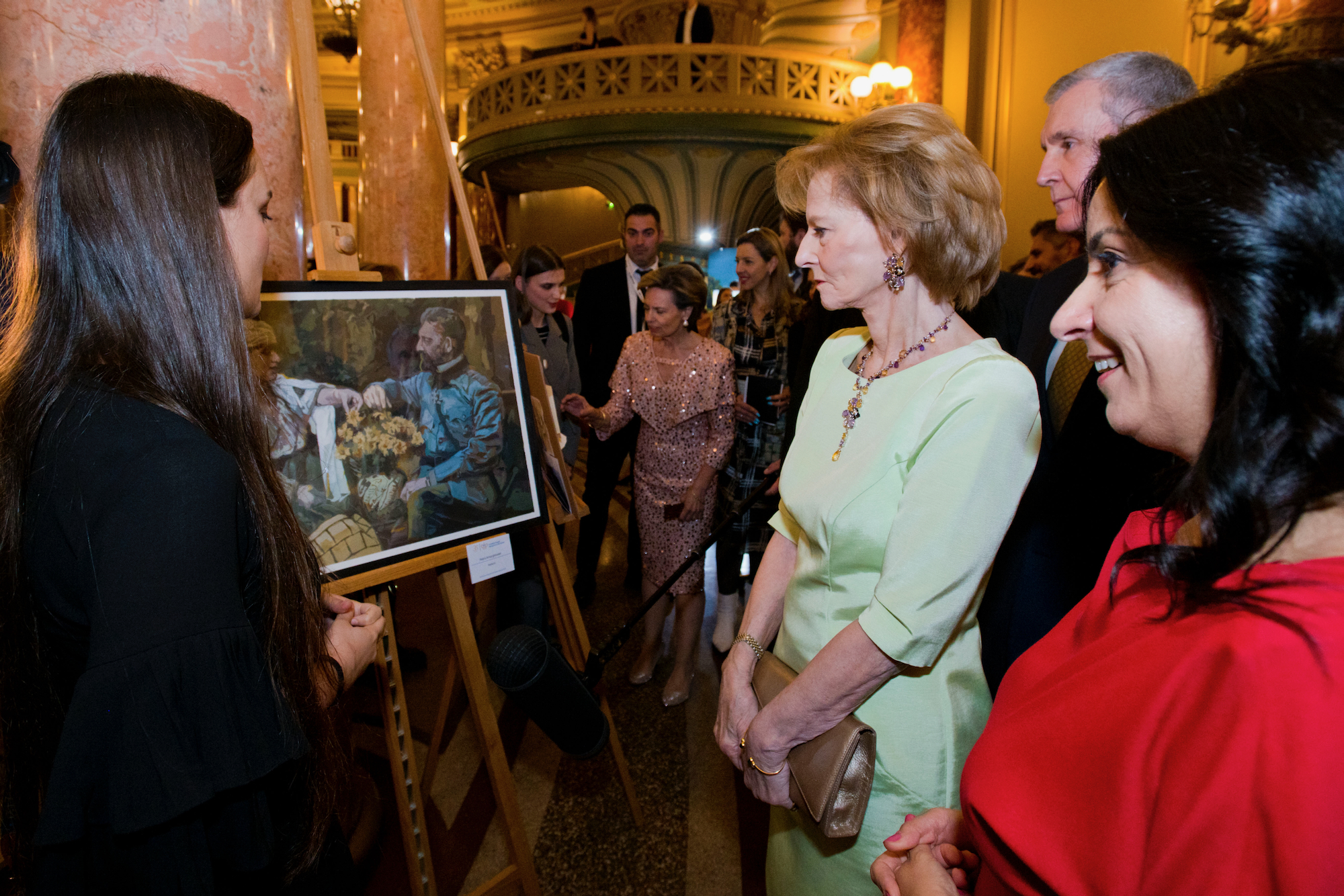 Astăzi se împlinesc o sută patru ani de la nașterea, la 25 octombrie 1921, la Castelul Foișor, a Regelui Mihai al României. Seara, Ateneul Român a găzduit al XVI-lea concert regal caritabil, organizat de Fundația Regală Margareta a României, continuând tradiția tuturor generațiilor regale de susținere și promovare a culturii naționale și a talentului românesc. AGERPRES Majestatea Sa Custodele Coroanei și Alteța Sa Regală Principele Radu au avut alături pe ASR Principesa Sofia și ASR Principesa Maria, precum și pe Altețele Lor Regale Principele Aimone de Savoia, Duce de Aosta, Principesa Olga, Ducesă de Aosta, și cei trei copii ai lor, Principele Umberto, Principele Amedeo și Principesa Isabella. La concert au luat parte membri ai Comitetului Director, membri ai colectivului, voluntari și susținători ai fundației. Au onorat cu prezența Nunțiul Apostolic, decanul Corpului Diplomatic acreditat în România, ambasadorul Republicii Franceze împreună cu soția, personalități din mediul economic, din societatea civilă, oameni de artă și un numeros public. Început în anul 2008, șirul concertelor a avut o remarcabilă constanță, desfășurându-se mereu la Ateneul Român, mereu de ziua de naștere a Regelui Mihai și mereu în scopul de a sprijini bursierii programului “Tinere Talente”. În acest an, în Rotonda Ateneului, publicul a putut vizita expoziția „Pasiunile și Preocupările Familiei Regale”, realizată de tinerii artiști vizuali, bursieri ai programul Tinere Talente, sub îndrumarea mentorului conf. univ. dr. Ion Anghel. De asemenea, Curtea Veche Publishing a fost prezentă în foaier cu o amplă colecție de volume regale, publicate de-a lungul ultimilor ani. Concertul Regal caritabil a reunit Alumni de succes din primele generaţii ale programului Tinere Talente, premiaţi internaţional. Cea de-a XVI-a ediție a îmbinat tradiția, spiritul tinereții și generozitatea, avându-i invitați pe scena Ateneului Român pe dirijorul David Crescenzi și Orchestra New Hope, care au acompaniat muzicieni de valoare pe plan național și internațional, mezzosoprana Ramona Zaharia și tenorul George Vîrban, cu participarea Corului Național Român, dirijat de Daniel Jinga. Programul muzical a prezentat o selecție a unor frumoase pagini de operă și operetă, arii și duete celebre extrase din creațiile compozitorilor Giuseppe Verdi, Georges Bizet, P. I. Ceaikovski, C. Gounod, Agustín Lara și Ruperto Chapí. Concertul Regal este unul dintre cele mai longevive și de succes evenimente de strângere de fonduri din România. Fondurile strânse în urma evenimentului vor sprijini programul “Tinere Talente” prin care Fundația oferă burse de studiu celor mai talentați tineri artiști români, aflați în situații materiale dificile. ![]() ![]() ![]() ![]() ![]() ![]() ![]() ![]() ![]() ![]() ![]() ![]() ![]() ![]() ![]() ![]() ![]() ©Daniel Angelescu, Casa Majestății Sale |