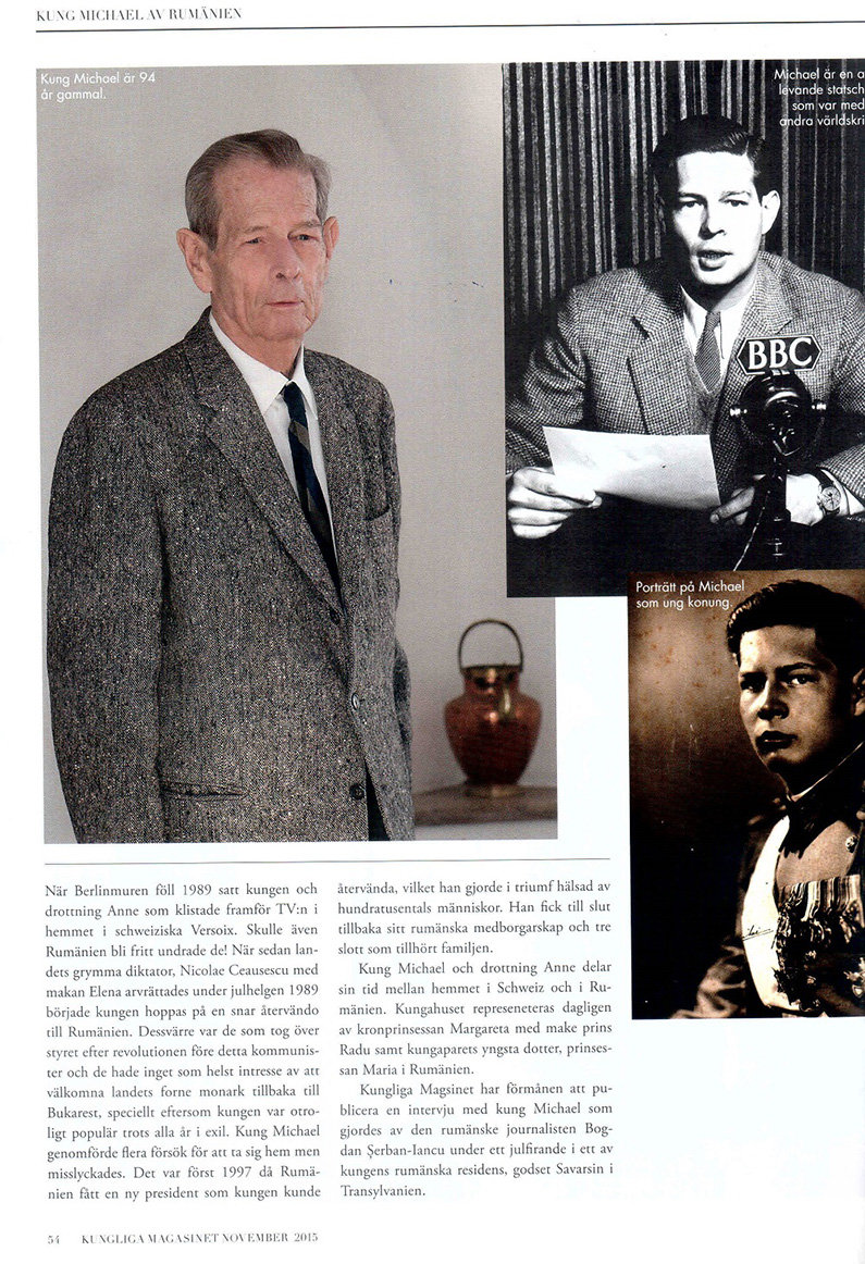 Revista Kungliga Magasinet despre Familia Regală a României, noiembrie 2015