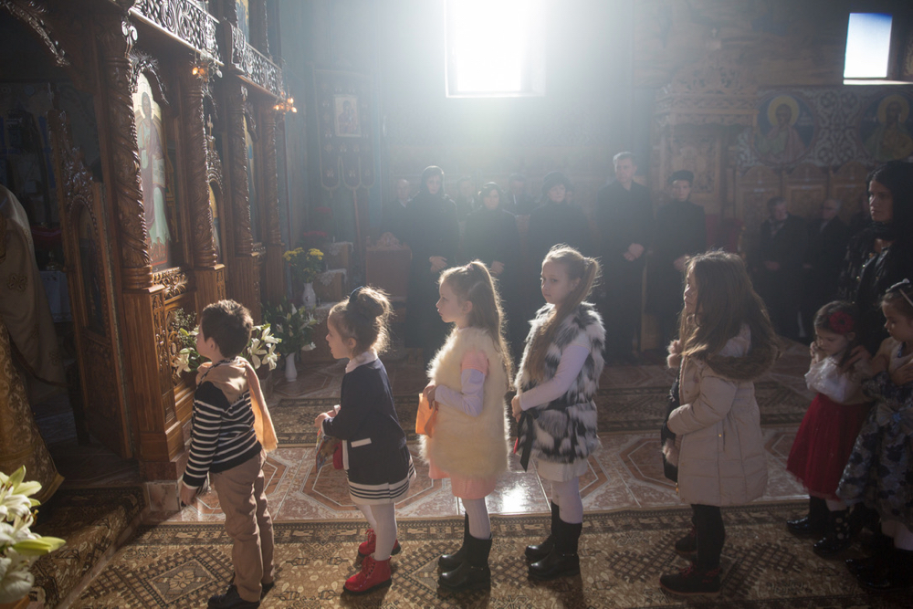 Au fost prezenți mulți enoriași, printre care s-au numărat primarul comunei, dl Ioan Vodicean, cu familia sa, dubașii care au colindat întreaga comunitate cu două zile în urmă, tineri și elevi din comună, precum și părinți și bunici cu copiii săvârșineni. Au fost cântate colinde, iar Majestatea Sa Margareta a primit în dar, în mod simbolic, un colac copt în această dimineață în cuptor, după tradiția strămoșească.