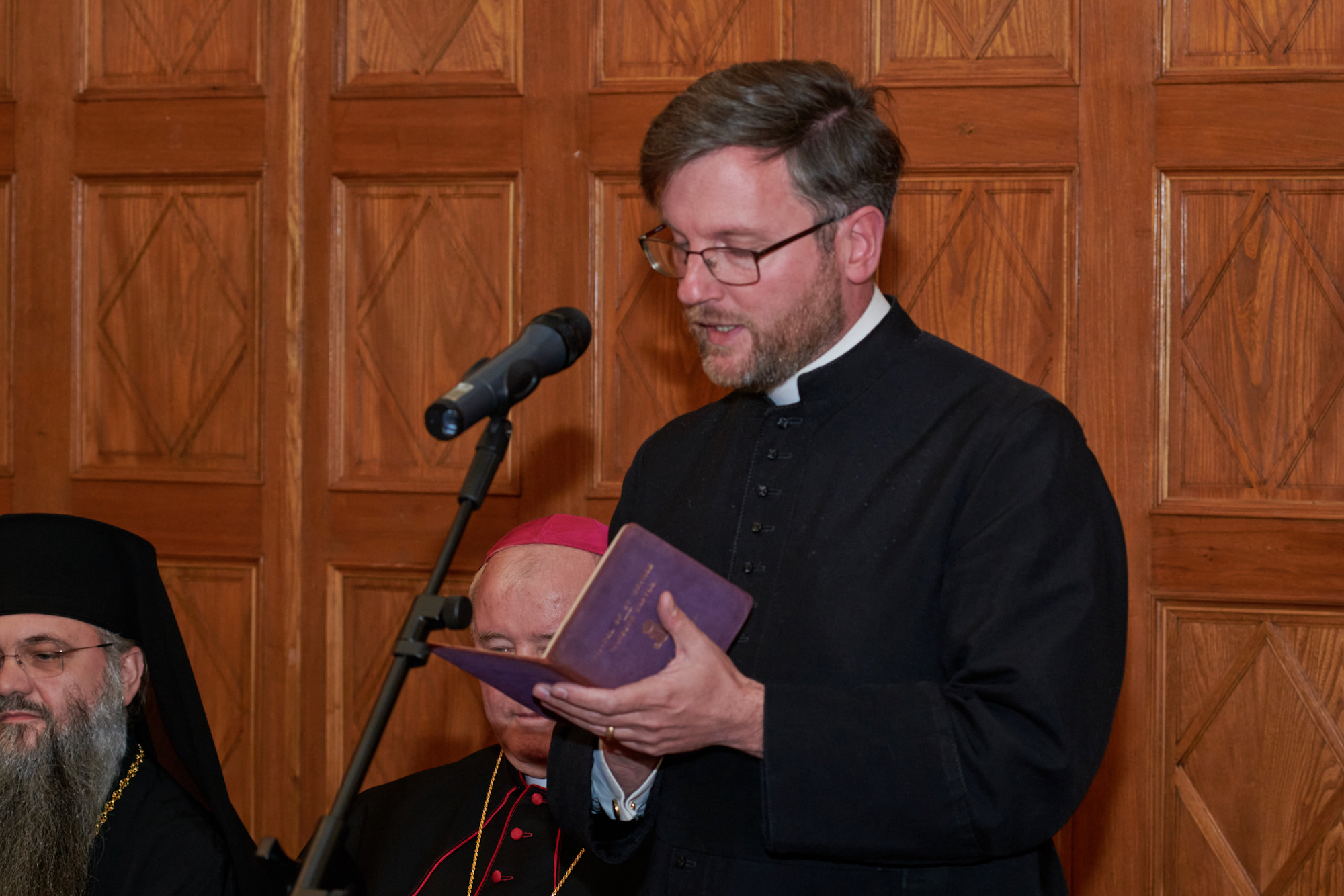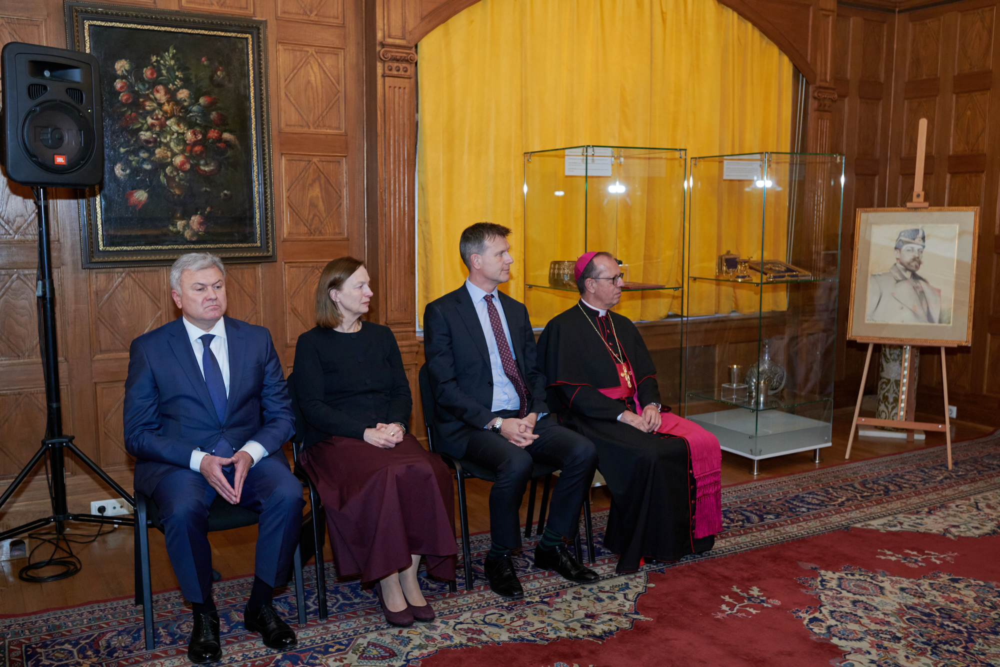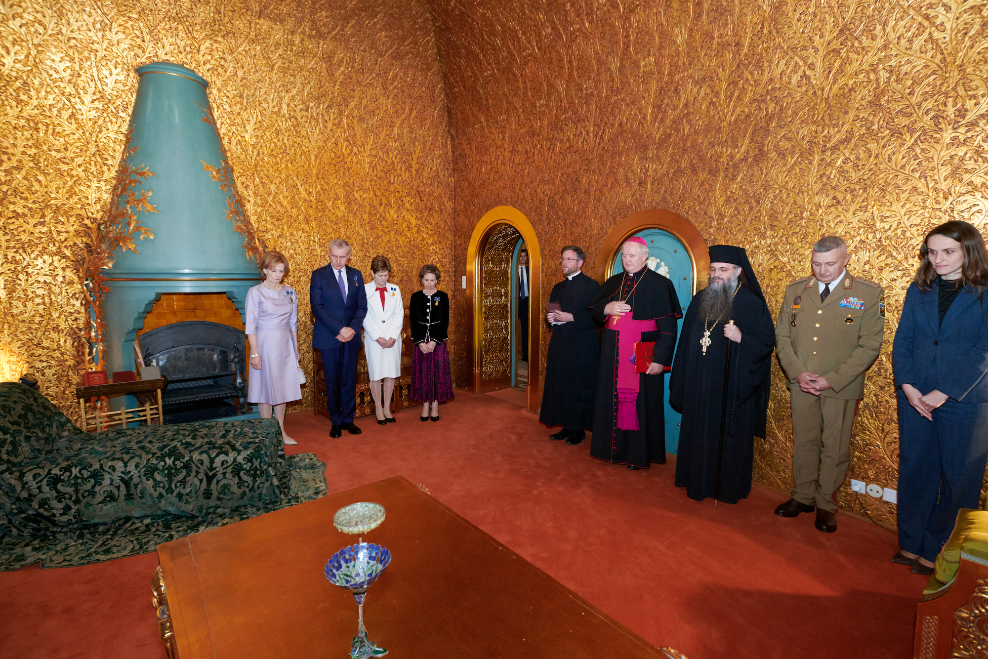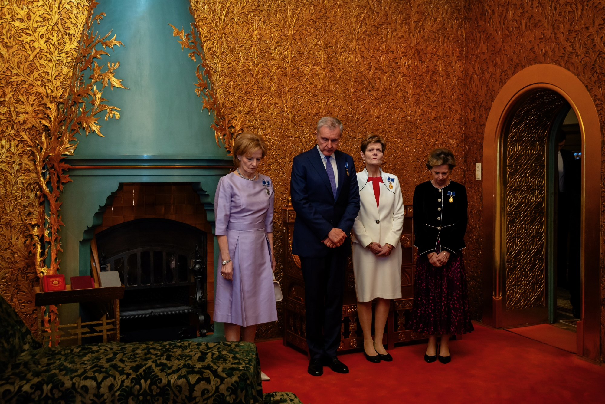 ![]() În anul 2025, Suveranii României Mari sunt împreună sărbătoriți de societatea românească, la împlinirea a 160 de ani de la nașterea Regelui Ferdinand Întregitorul și a 150 de ani de la nașterea Reginei Maria. AGERPRES Majestatea Sa Custodele Coroanei a dorit să aducă un omagiu strămoșilor săi în ziua de 29 octombrie, ziua de naștere a Reginei Maria, în chiar căminul lor de o viață, Castelul Pelișor. Alături de Principele Radu, Principesa Elena și Principesa Sofia, Majestatea Sa a invitat reprezentanți ai Statului român și personalități ale societății civile, pentru a celebra neprețuita moștenire istorică și legământul suveranilor care și-au legat numele de unitatea, identitatea și statornicia României moderne. La sărbătorire au luat parte Ministrul Afacerilor Externe, ES doamna Oana Țoiu, și Șeful Statului Major al Apărării, generalul Gheorghiță Vlad, alături de Decanul Corpului Diplomatic, ES Arhiepiscopul Giampiero Gloder, Nunțiul Apostolic, ambasadorul Republicii Federale Germania, ES doamna Angela Ganninger, ambasadorul Regatului Unit al Marii Britanii și Irlandei de Nord, ES dl Giles Portman, și ambasadorul Republicii Moldova, ES dl. Victor Chirilă. Majestatea Sa a invitat, de asemenea, pe Părintele Arhimandrit David Petrovici, exarhul Zonei de Munte a Arhiepiscopiei Bucureștilor a Bisericii Ortodoxe Române, pe ÎPS Aurel Percă, Arhiepiscop și Mitropolit Romano-Catolic de București, și pe părintele Nevsky Everett al Bisericii Anglicane. În Holul de Onoare al Castelului Pelișor au fost prezenți reprezentanți ai altor instituții ale Statului român și personalități ale societății civile. Au rostit un cuvânt de recunoștință Principele Radu, Ministrul Afacerilor Externe, Șeful Statului Major al Apărării, iar reprezentanții Bisericilor Ortodoxe, Catolice și Anglicane au rostit rugăciuni. După sărbătorirea din Holul de Onoare, Familia Regală, demnitarii Statului și reprezentanții Instituțiilor Credinței au urcat în Camera de Aur a Castelului Pelișor, unde odihnește Inima Reginei Maria, pentru a se ruga și a păstra un moment de reculegere. ![]() ![]() ![]() ![]() ![]() ![]() ![]() ![]() ![]() ![]() ![]() ![]() ![]() ![]() ©Daniel Angelescu și Alexandra Gogu, Casa Majestății Sale |