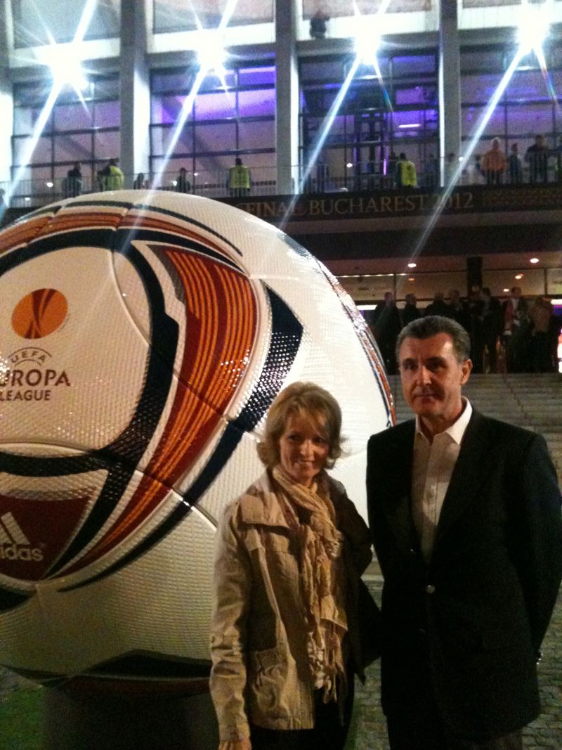 Finala Cupei UEFA afost un eveniment f.important pentru ROMANIA .Cei care au venit special dinSPANIA la BUCURESTI, cred ca au avut ocazia sa vada si o alta fata a tarii. Ma bucur pt.prezenta AA VV RR ,la acest meci , alaturi de PRINCIPELE DE ASTURIA .Poate in ochii celor de afara “mai crestem si noi putin.”Sieu am vazut autocarele si masinile oficiale in drumul catre stadion si intoarcerea lor dupa meci.Atmosfera era incendiara din partea suporterilor. Si inca nu incepuse partida.