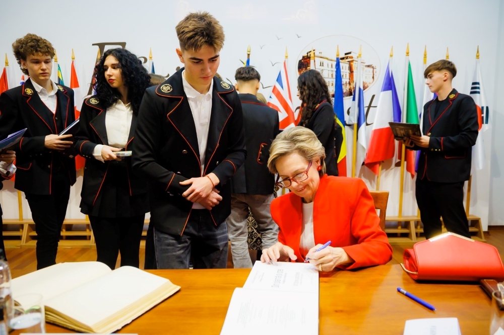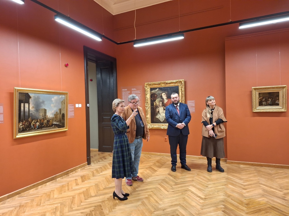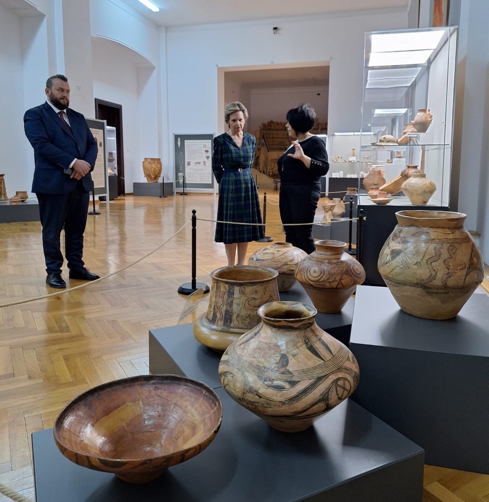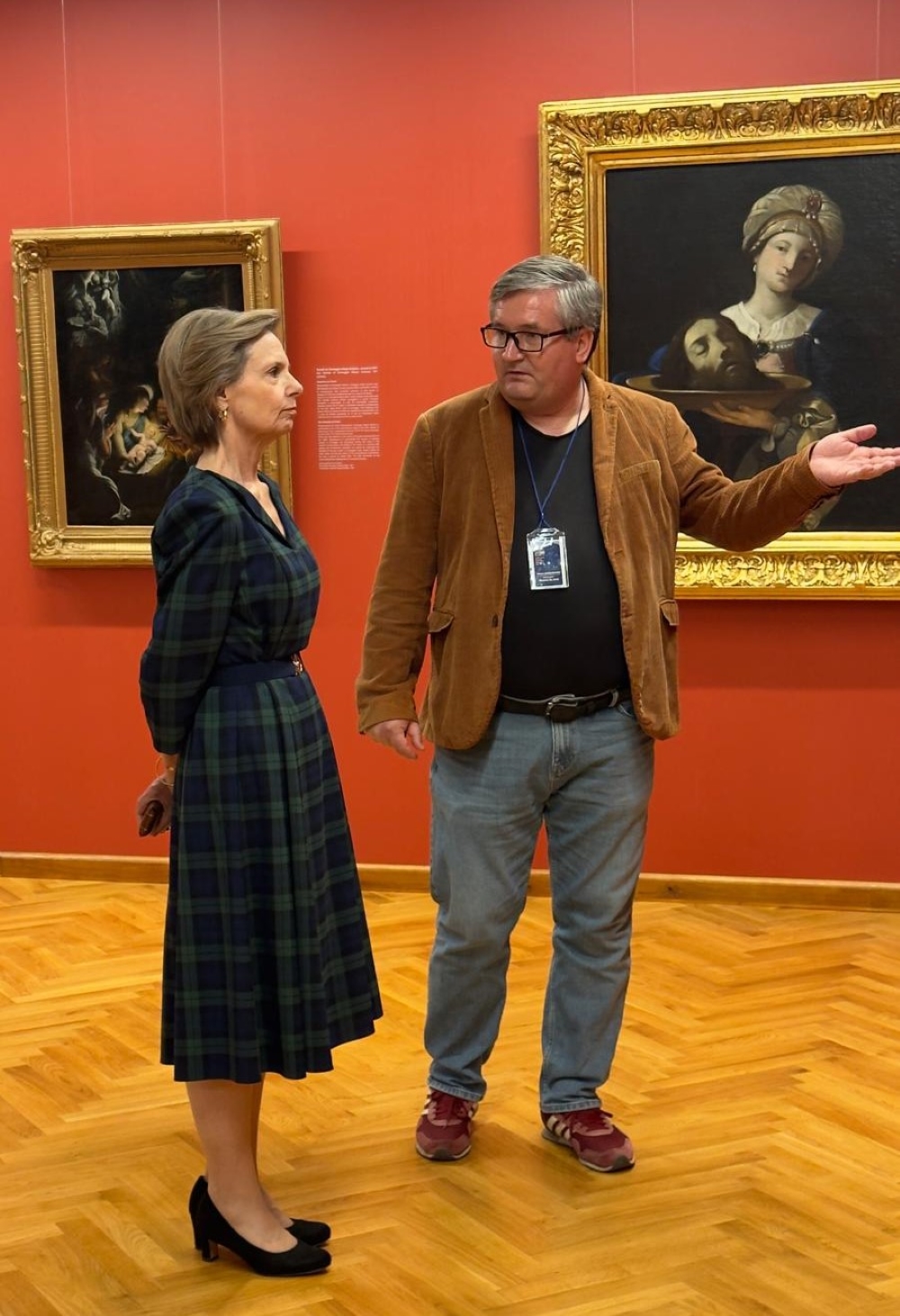![]() În zilele de 18-21 noiembrie 2025, Alteța Sa Regală Principesa Sofia efectuează o vizită în municipiul Iași, Oraș Regal. Municipiul Iași, capitală a Regatului României în anii 1916-1918, în timpul participării României la Primul Război Mondial, este locul unde s-au scris pagini hotărâtoare pentru destinul românesc în secolul al XX-lea. Aici au fost consfințite Legea Agrară și Legea Electorală, de aici au fost cârmuite Legislativul, Executivul și Armata Regală, în cele mai grele momente pentru națiunea română din întreaga ei istorie modernă. În după-amiaza zilei de marți, 18 noiembrie 2025, Alteța Sa Regală Principesa Sofia a vizitat Palatul Culturii din Iași, aflat sub Înaltul Patronaj al Majestății Sale Margareta, Custodele Coroanei. În prezența domnului Andrei Apreotesei, Manager Interimar al Complexului Muzeal Național „Moldova” Iași și a echipei sale, vizita a urmat un parcurs prin muzeele incluse în ansamblul complexului muzeal, într-o călătorie care a reunit patrimoniul artistic, arheologic și istoric al regiunii. Principesa Sofia a vizitat Galeria de Artă Românească, unde selecția lucrărilor urmărește cronologic evoluția artei românești între secolele XIX–XX, de la primele manifestări ale picturii laice și până la consolidarea modernității artistice. În continuare, Alteța Sa Regală a vizitat Galeria de Artă Europeană, care reunește opere din școlile artistice italiană, spaniolă, flamandă-olandeză, germană, austriacă, rusă și poloneză. ![]() ![]() ![]() Programul vizitei a inclus și expoziția temporară „O lume în miniatură. Despre lucrurile civilizației Cucuteni”, dedicată artefactelor descoperite în siturile aparținând culturii Cucuteni, o civilizație preistorică de acum peste 5.000 de ani. Expoziția conturează „Universul miniatural” al vieții cotidiene a acestei civilizații, aducând laolaltă obiecte din ceramică pictată cu motive spiralice și compoziții complexe, figurine de lut ars și reprezentarea unui tip de locuință. ![]() ![]() În ziua de miercuri, 19 noiembrie, Principesa Sofia a vizitat Colegiul Național „Costache Negruzzi” din Iași, cu ocazia tradiției academice a Colegiului „Costache Negruzzi”, care a celebrat anul acesta a 130 de ani de la înființare. Vizita a debutat cu un tur al colegiului, oferind o imagine a spațiilor de învățământ, prezentate de doamna prof. dr. Camelia Gavrilă, directorul instituției. În continuare, Alteța Sa Regală a participat la o prezentare pe tema istoriei Regalității în România și legăturile instituției cu Coroana Română. În amfiteatrul colegiului, a avut loc un dialog cu elevii și profesorii, prilej cu care aceștia și-au împărtășit proiectele educaționale, activitățile de cercetare și inițiativele culturale desfășurate. ![]() ![]() ![]() ![]() ![]() În continuare, Principesa Sofia a vizitat Catedrala Mitropolitană din Iași, unde a fost primită de Înalt Preasfințitul Teofan, Mitropolitul Moldovei și Bucovinei. Programul a inclus un moment de rugăciune, la care au participat domnul Mihai Chirica, Primarul Municipiului Iași și domnul Andrei Apreotesei, Manager Interimar al Complexului Muzeal Național „Moldova” Iași. ![]() ![]() ![]() Cu acest prilej, Principesa Sofia a vizitat și expoziția „Mărturii Regale” găzduită de Muzeul Mitropolitan Iași, Expoziția reunește documente, publicații, medalii și obiecte cu valoare istorică, ilustrând relația dintre Biserica Ortodoxă Română și Casa Regală a României. ![]() După-amiaza, Alteța Sa Regală a fost oaspetele Universității Naționale de Arte „George Enescu” din Iași, unde a fost primită de domnul Prof. univ. dr. Aurelian Bălăiță, Rectorul instituției. Vizita a debutat cu un tur al Facultății de Arte Vizuale și Design, oferit de domnul Decan, Prof. dr. Adrian Stoleriu. Alteța Sa Regală a parcurs spațiile facultății, inclusiv Galeria de Artă Vizuală „Aparte”, unde a fost prezentat modul în care studenții, cadrele didactice și artiști invitați colaborează în organizarea de expoziții, ateliere de lucru și proiecte interdisciplinare. Geleria cuprinde lucrările de licență, dizertație și doctorat ale studenților, cu care Principesa Sofia a avut ocazia să discute despre parcursul lor artistic și proiectele desfășurate în cadrul universității. Vizita a oferit un prilej de dialog între tradiția academică a instituției și energia creativă a noilor generații de artiști. ![]() ![]() ![]() |