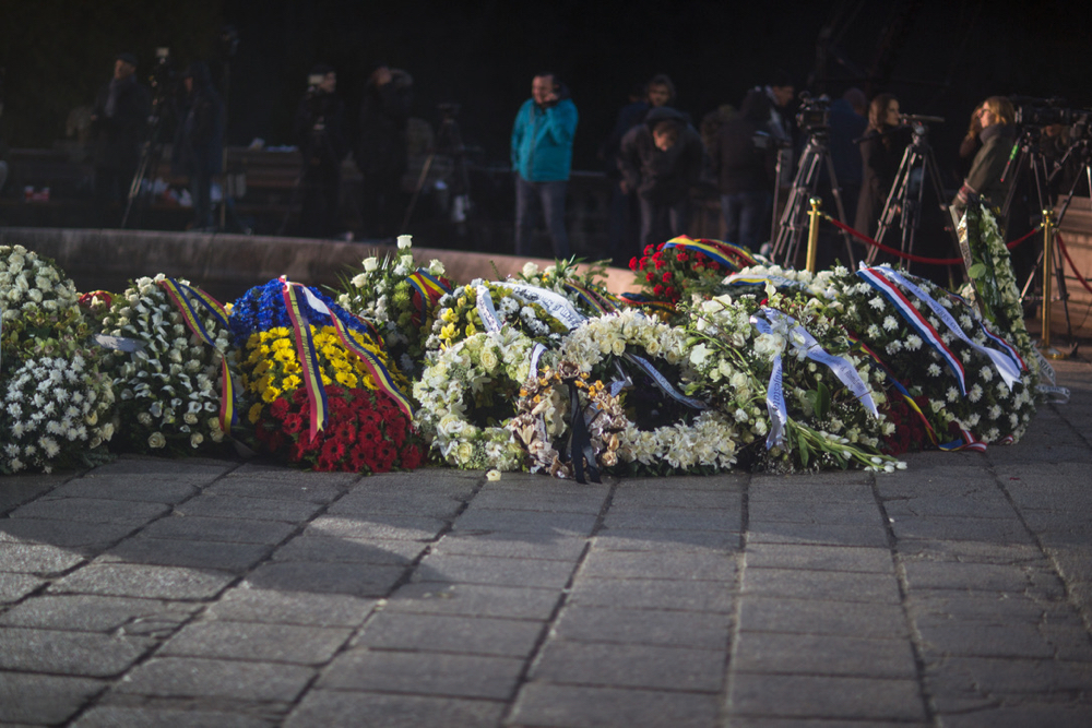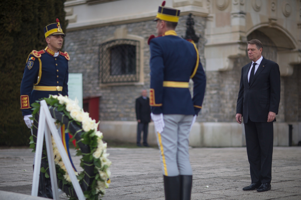 Au venit să se reculeagă în Holul de Onoare Președintele României, ES dl Klaus Werner Iohannis, Președinții celor două Camere ale Parlamentului, ES dl Călin Popescu-Tăriceanu, împreună cu doamna Popescu-Tăriceanu, și ES dl Liviu Dragnea.