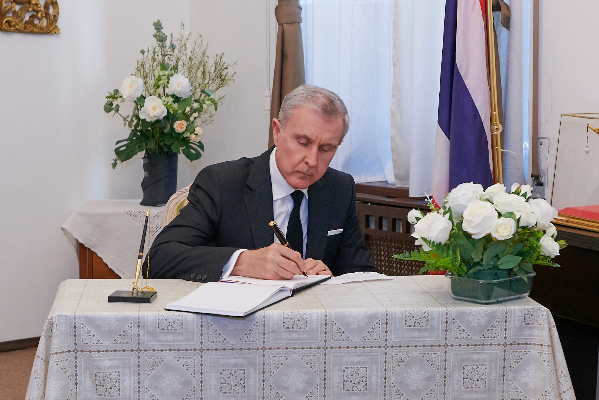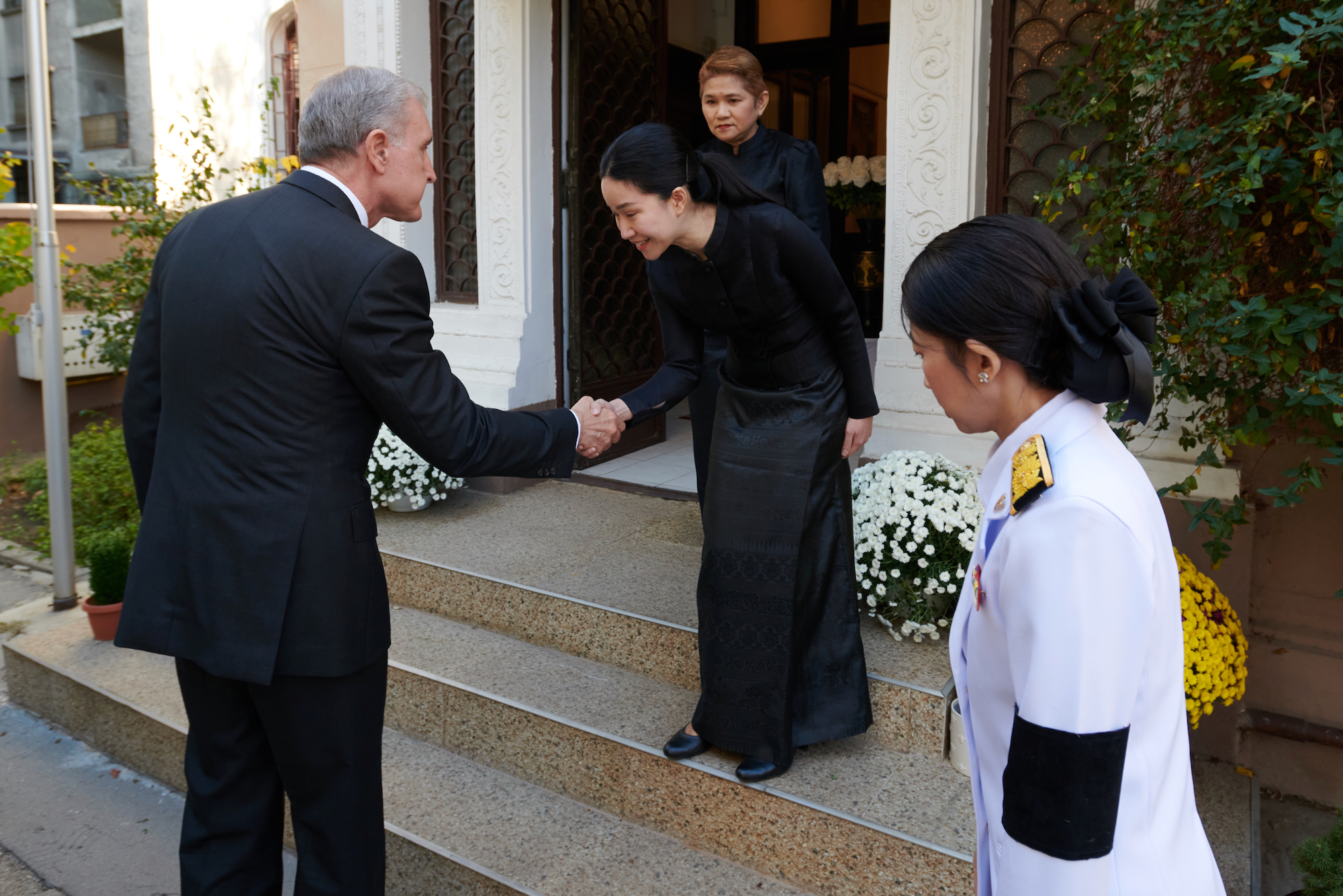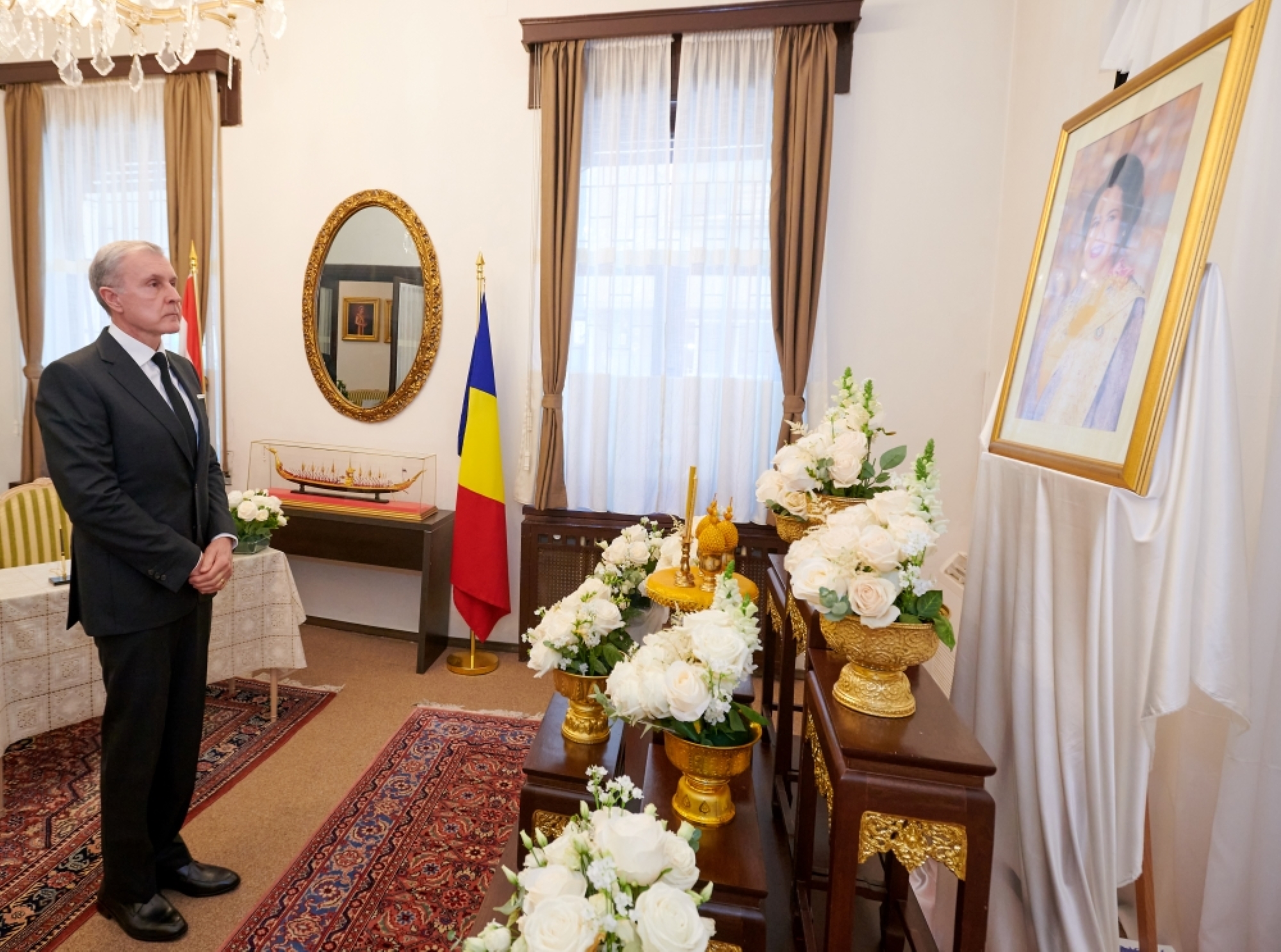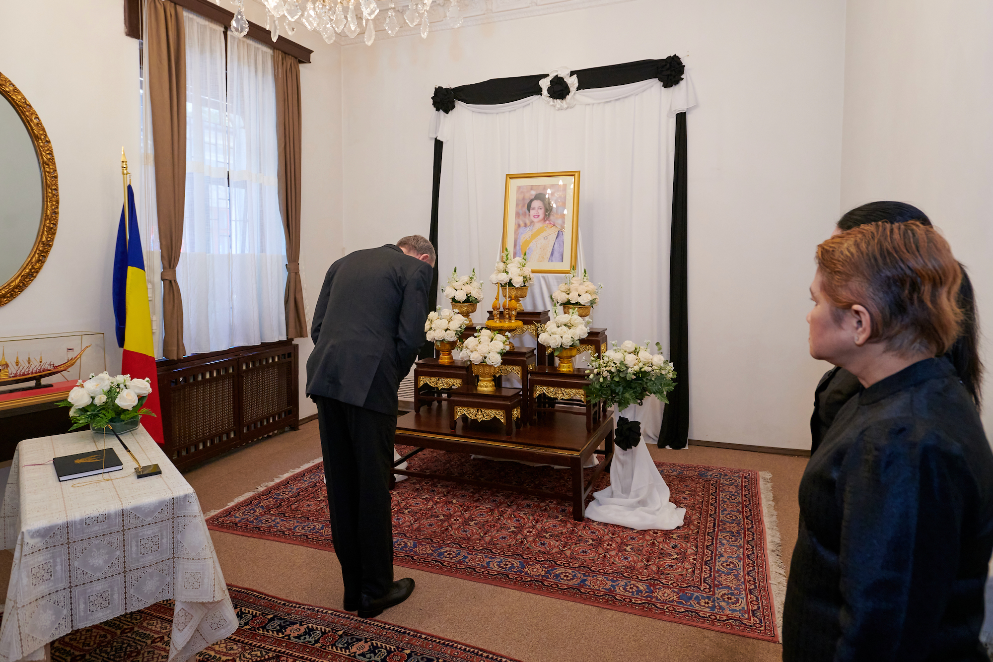![]() Alteța Sa Regală Principele Consort a reprezentat pe Majestatea Sa Custodele Coroanei la Ambasada Regatului Thailandei din București, unde a semnat în Cartea de condoleanțe deschisă în memoria Reginei-Mamă Sirikit a Thailandei, care a trecut la cele veșnice în ziua de 24 octombrie 2025. Soția Regelui Bhumibol Adulyadej, Majestatea Sa Defunctă a fost regina-consort a Regatului Thailandei din anul 1950 până la decesul suveranului, în anul 2016. Regina-Mamă Sirikit s-a născut în anul 1932, fiică a Principelui Kitiyakara și descendentă, ca și soțul ei, din Regele Chulalongkorn. Majestatea Sa rămâne drept una dintre cele mai iubite, mai luminoase și mai respectate figuri din istoria contemporană a Regatului Thailandei. Soțul său, Regele Bhumibol al Thailandei, a domnit timp de 70 de ani (iunie 1946 – octombrie 2016). Majestatea Sa Margareta, Custodele Coroanei, și ASR Principele Radu au vizitat Regatul Thailandei în anii 2004 și 2008. În anul 2016, la decesul Regelui Bhumibol, Custodele Coroanei și Principele Radu au adus un omagiu suveranului la Ambasada Thailandei la București. ![]() ![]() ![]() ![]() ![]() ![]() ![]() ©Daniel Angelescu, Casa Majestății Sale |