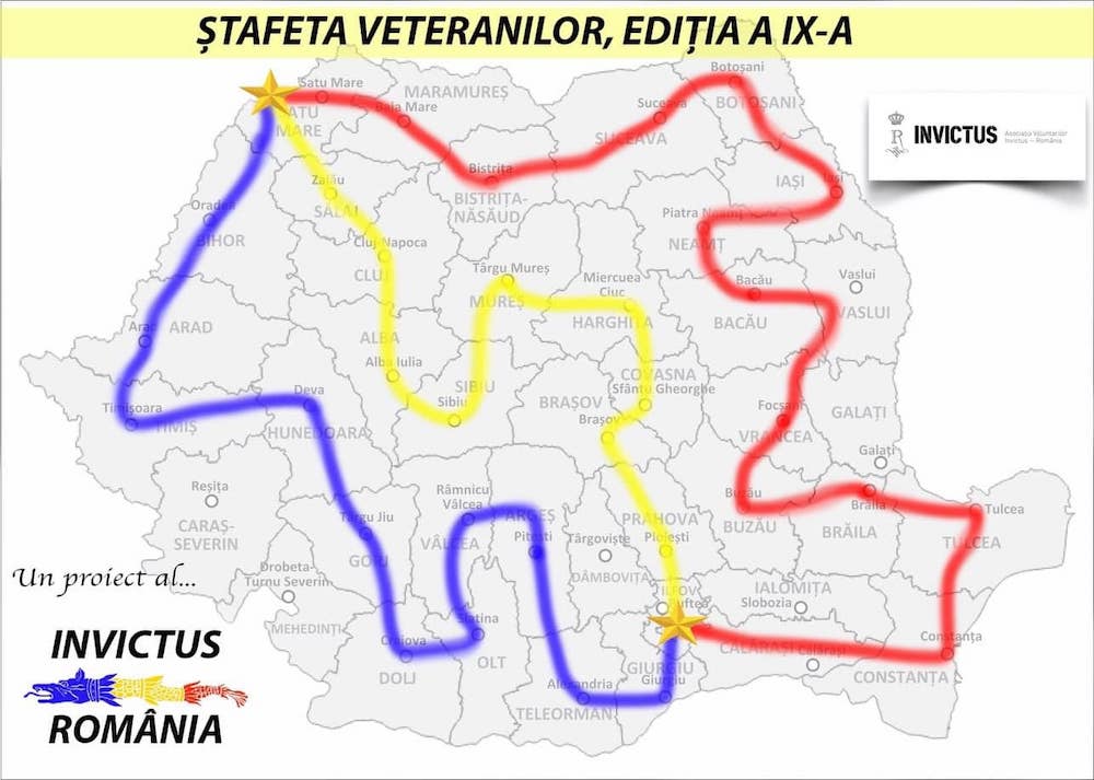 Ștafeta Veteranilor 2022 a însumat 3 800 kilometri. Echipele de ștafetă au fost formate din voluntari civili și militari, sportivi de performanță sau amatori și militari răniți – componenți ai Invictus Team România la Jocurile Invictus. Ei au alergat pe trei trasee, albastru, galben și roșu.