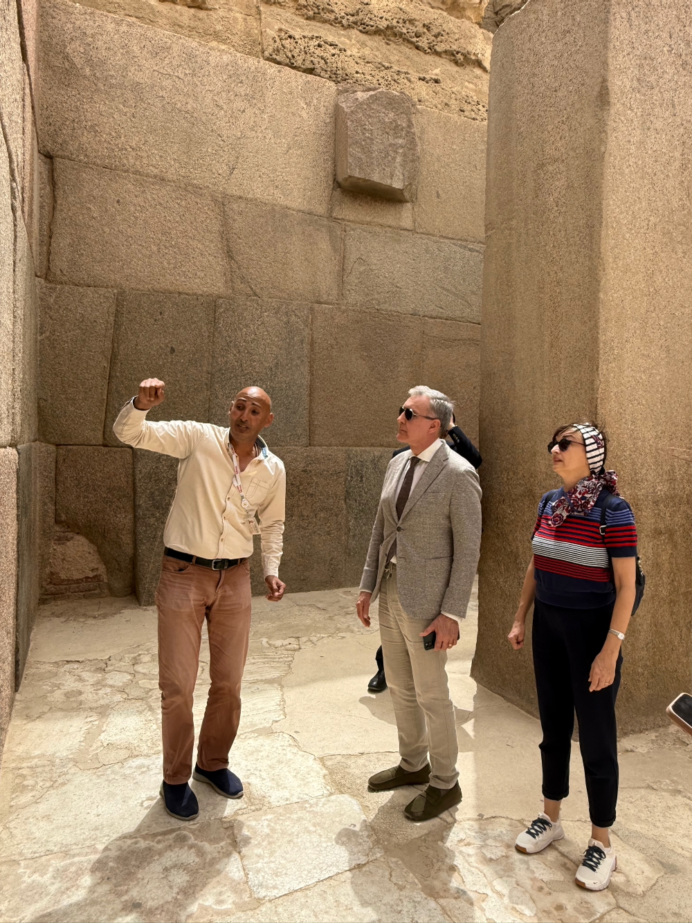 Dna Claudia Nicolae, director general AGERPRES, ghidul egiptean de limbă română, Principele Radu, ambasadoarea Olivia Toderean și dl Traian Sârcă