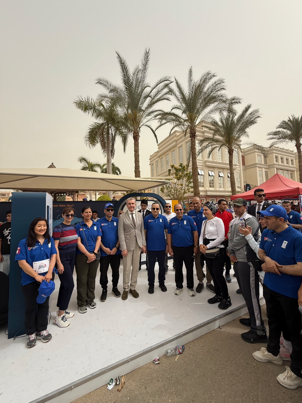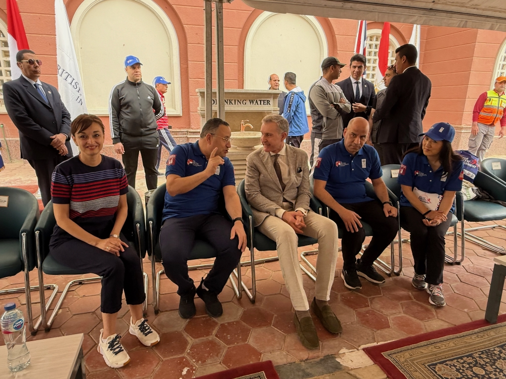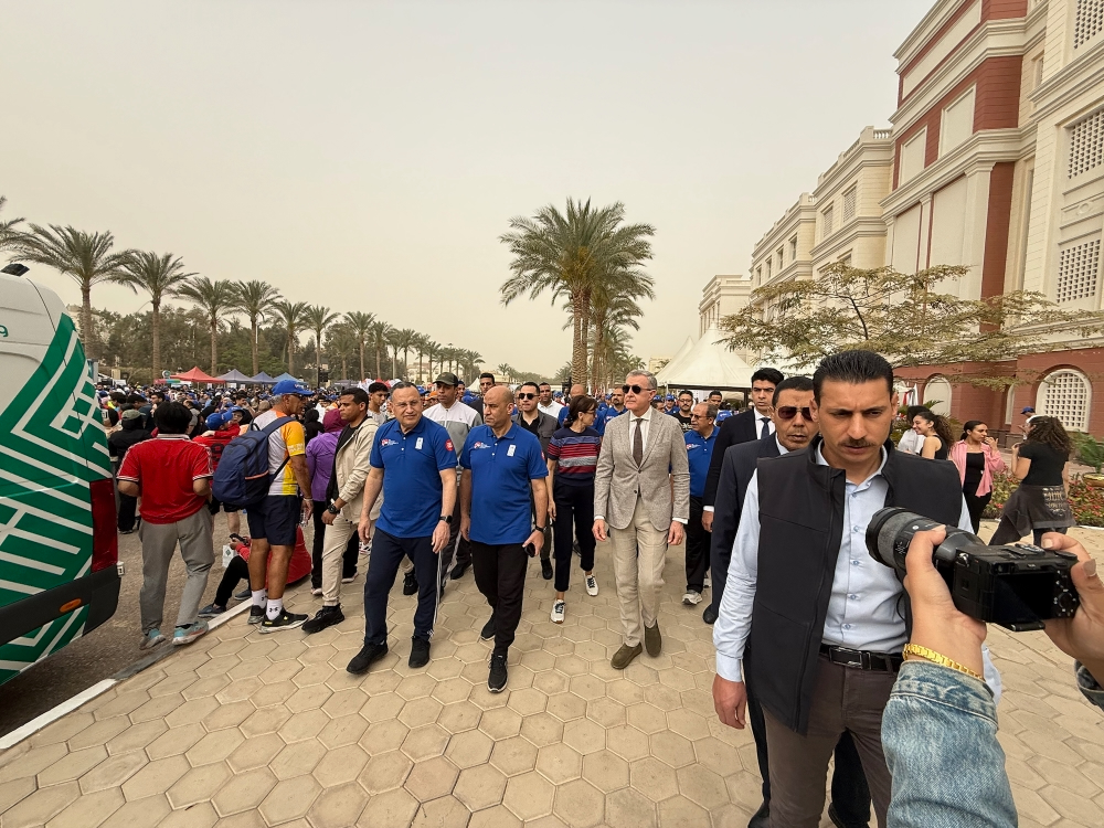 Alături de președintele universității, profesorul Mohamed Loutfi, de ministrul Educației Superioare, dr. Abdelaziz Konsowa, și de ministrul Muncii, dl Hassan Raddad, Principele Radu a dat startul maratonului.