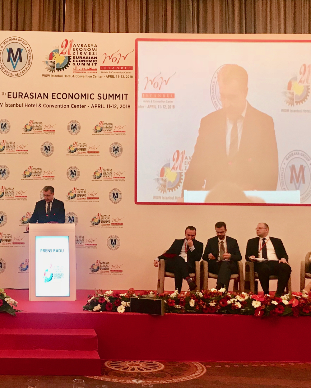 Ieri și astăzi, Alteța Sa Regală a răspuns invitației Fundației Marmara de a lua parte la Summit-ul Economic Euro-Asiatic, ajuns la a 21-a ediție. Principele Radu a susținut, în cadrul întâlnirii la nivel înalt de joi, 12 aprilie 2018, alocuțiunea “Generația tânără, moștenirea noastră cea mai valoroasă”. La summit au luat parte Prim-ministrul Republicii Turcia, ES dl Binali Yıldırım, ES dl Abdullah Gul, președintele Republicii Turcia (2007-2014), ES dl George Ivanov, președintele Macedoniei, ES dl Stjepan Mesici, președintele Croației (2000-2010), ES dl Emil Constantinescu, președintele României (1996-2000), precum și Sanctitatea Sa Bartolomeu I, Patriarhul Ecumenic.