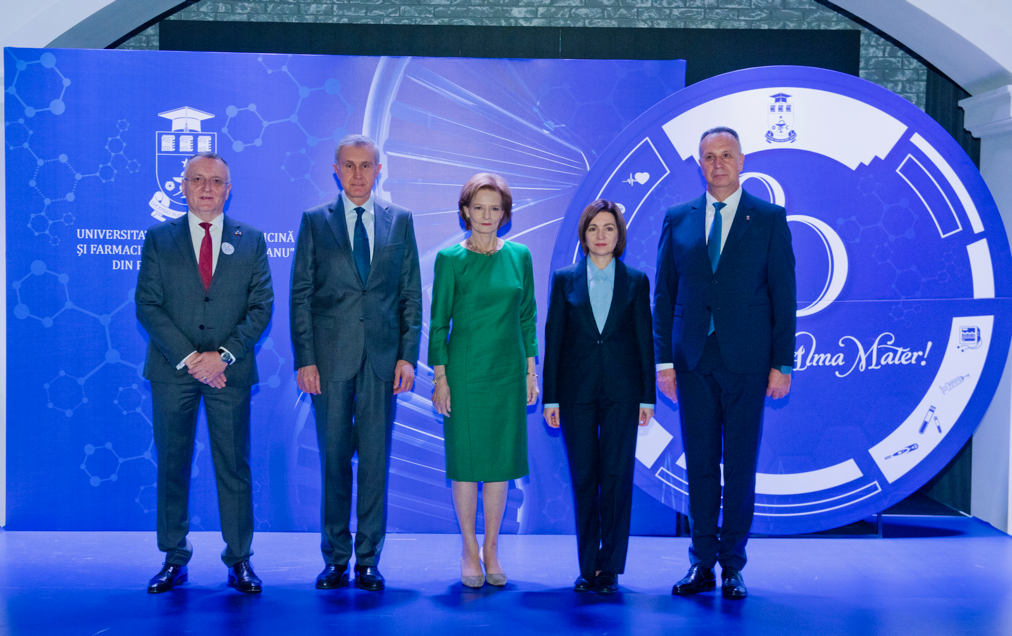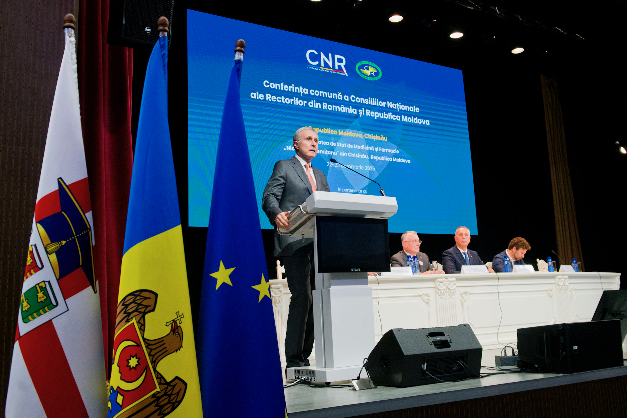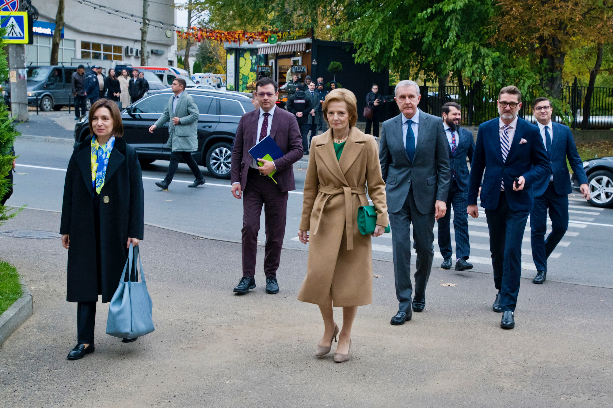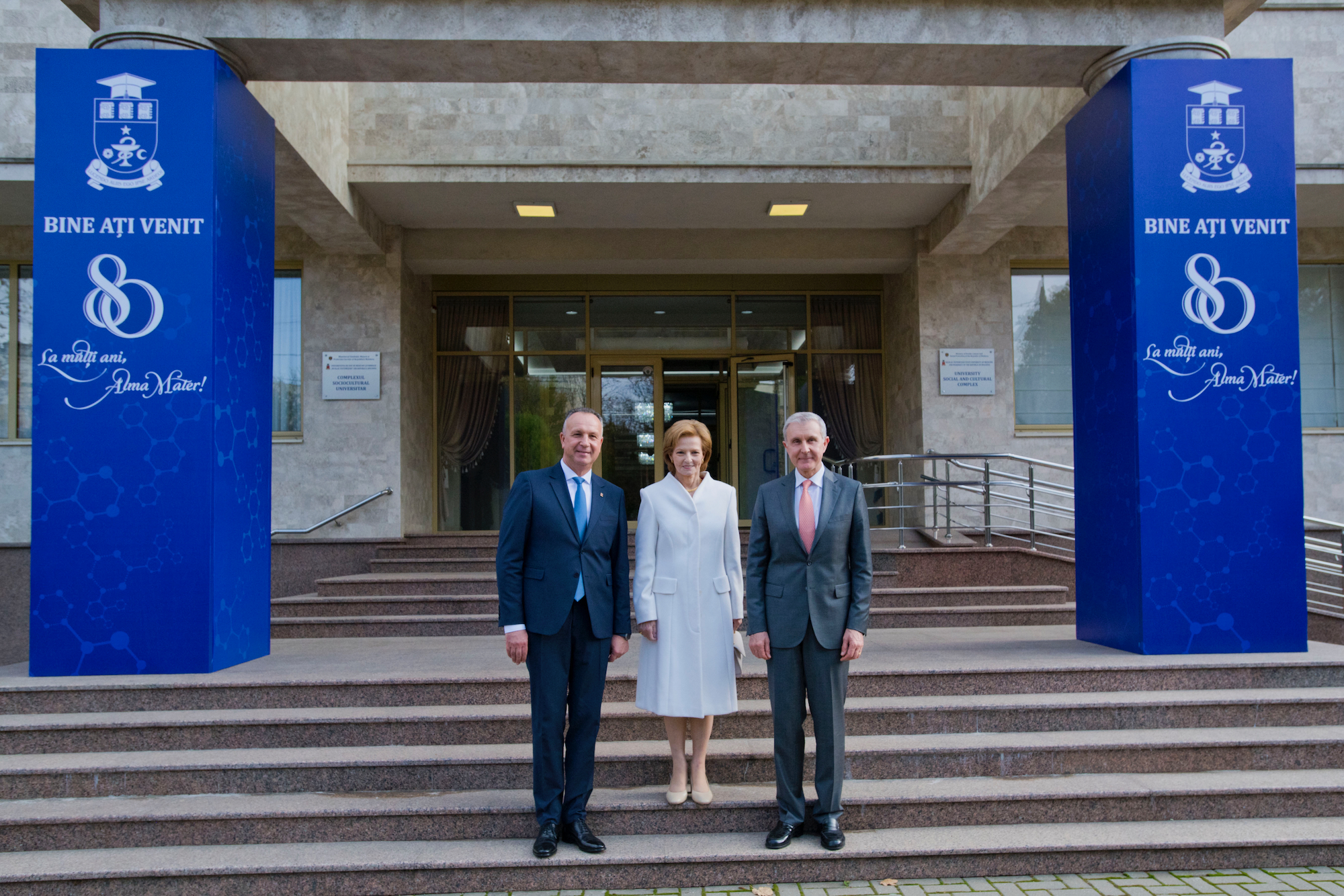 ![]() În a doua zi a vizitei la Chișinău, Majestatea Sa și Principele Radu au participat, alături de Președinta Republicii Moldova, la ceremonia aniversării a 80 de ani de la fondarea Universității de Stat de Medicină și Farmacie „Nicolae Testemițanu”. Evenimentul a avut loc la Complexul Sociocultural Universitar, unde Președinta și oaspeții regali au fost întâmpinați de profesorul universitar Emil Ceban, rectorul universității. AGERPRES La ceremonie au luat parte membri ai Guvernului Republicii Moldova, demnitari ai Statului român, rectori ai universităților din România și Republica Moldova, profesori și studenți, precum și numeroși invitați din străinătate. Au fost intonate Imnul de Stat al Republicii Moldova și Imnul Uniunii Europene, iar după cuvântul introductiv al rectorului Emil Ceban, au adresat discursuri Președinta Maia Sandu, Principele Radu și oficialități moldovene și europene. După-amiază, Familia Regală a participat la ședința comună a Consiliilor Naționale ale Rectorilor din România și din Republica Moldova. Musafirii regali au fost întâmpinați de profesorul universitar Emil Ceban, președintele Consiliului Rectorilor din Republica Moldova și de profesorul universitar Sorin Cîmpeanu, președintele Consiliului Național al Rectorilor din România. În grădina universității, Majestatea Sa și Principele Radu au plantat un copac Liquidambar pe aleea savanților și medicilor iluștri, ca un simbol al legăturii dintre universitățile din cele două state românești și al continuității istorice. Reuniunea a avut loc în prezența rectorilor universităților din România și Republica Moldova. Au luat parte dl Dan Perciun, ministrul Educației și Cercetării din Republica Moldova, și dl Gigel Paraschiv, secretar de Stat în Ministerul Educației și Cercetării din România. Consiliile Rectorilor vor continua șirul întâlnirii lor anuale la Iași, în cursul zilei de 24 octombrie. Au fost susținute alocuțiuni de către rectorul Emil Ceban, rectorul Sorin Cîmpeanu, ASR Principele Radu, ministrul Dan Perciun, secretarul de Stat Gigel Paraschiv, precum și reprezentanți al Guvernelor celor două țări. ![]() ![]() ![]() ![]() ![]() ![]() ![]() ![]() ![]() ![]() La reuniunea Consiliilor Naționale ale Rectorilor din România și Republica Moldova ![]() ![]() ![]() ![]() ![]() ![]() ![]() ![]() ©Daniel Angelescu, Casa Majestății Sale |