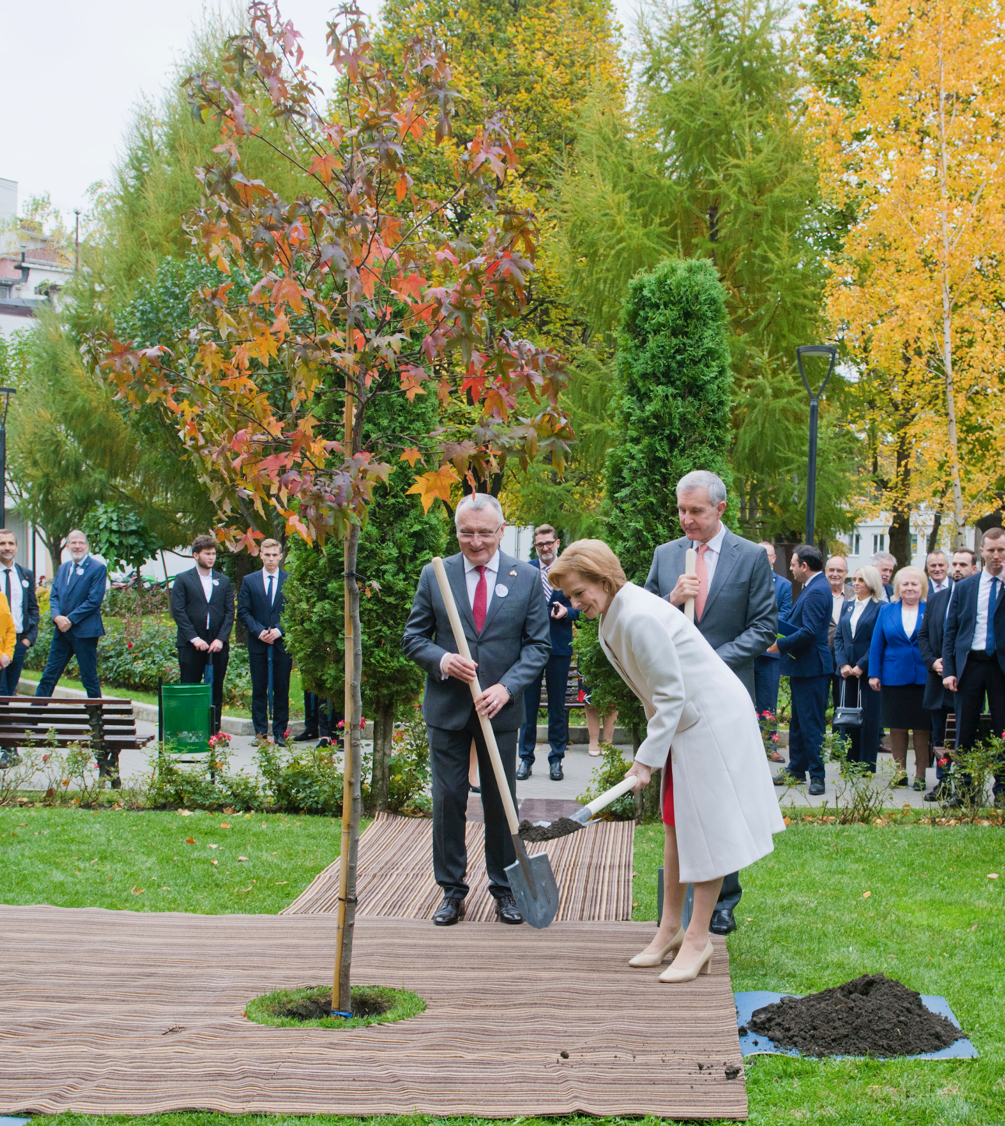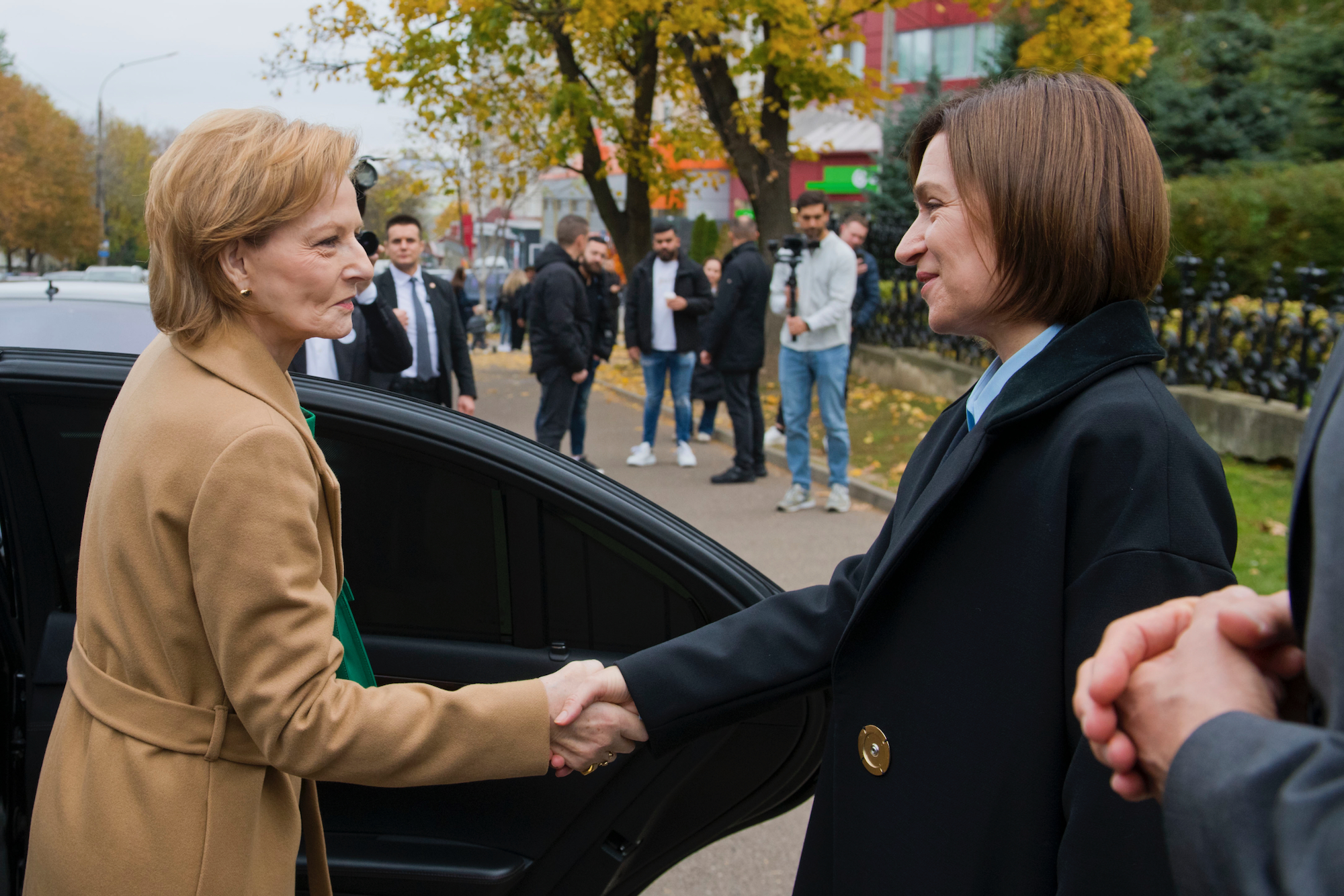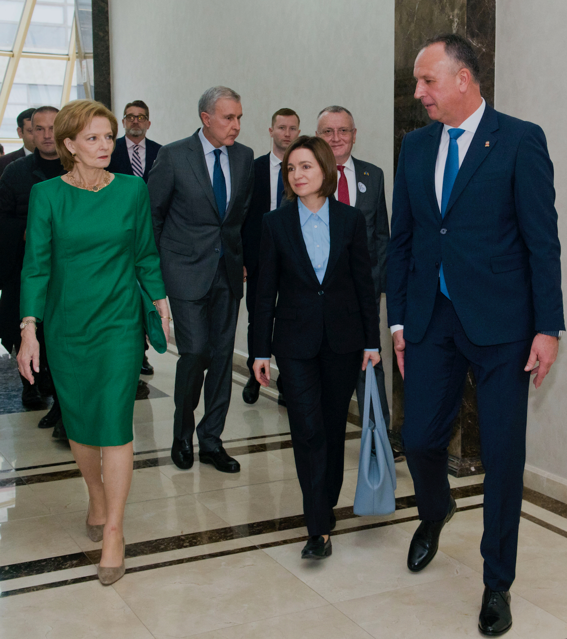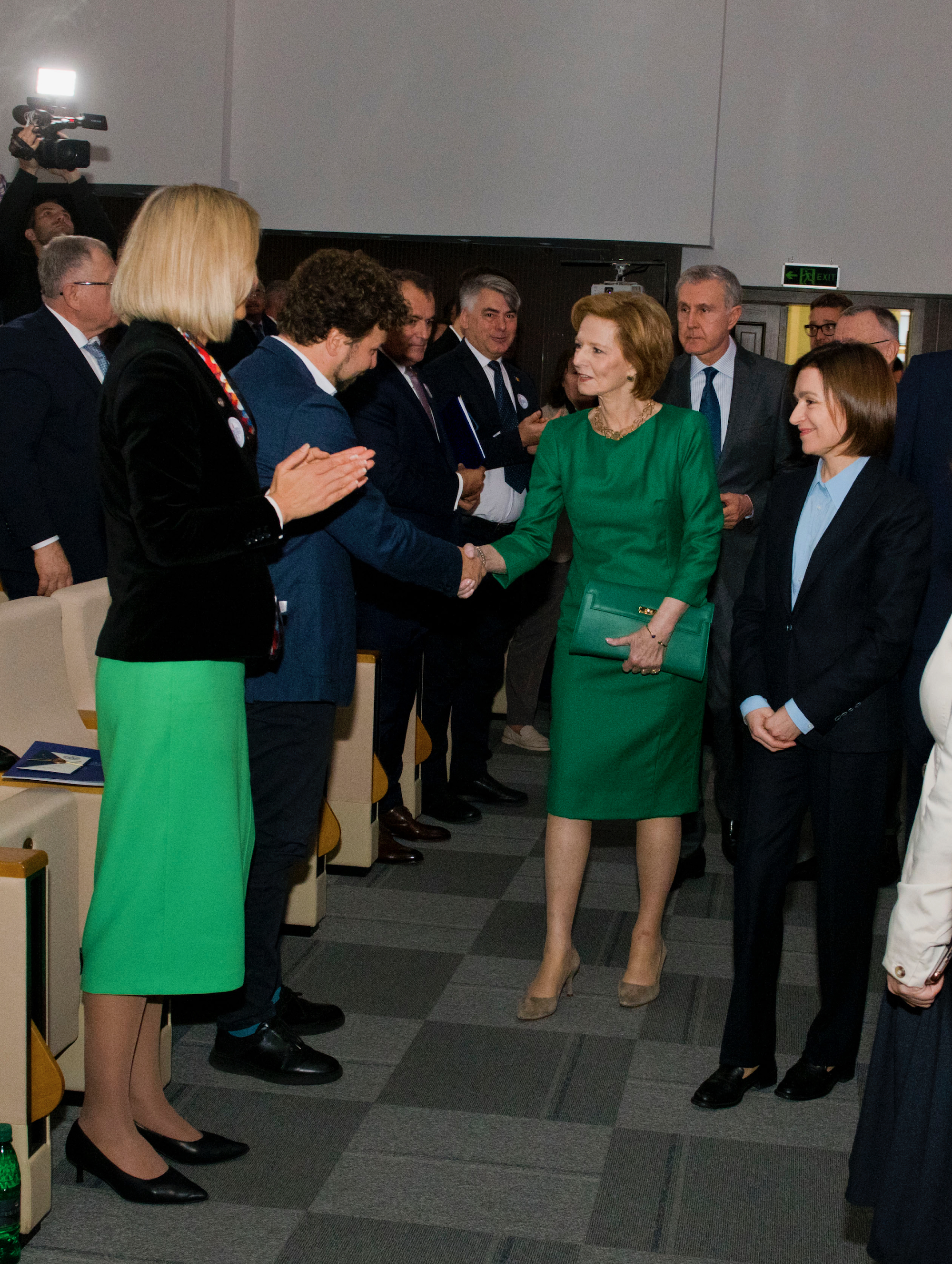 ![]() În a doua zi a vizitei la Chișinău, Majestatea Sa și Principele Radu au participat, alături de Președinta Republicii Moldova, la ceremonia aniversării a 80 de ani de la fondarea Universității de Stat de Medicină și Farmacie „Nicolae Testemițanu”. Evenimentul a avut loc la Complexul Sociocultural Universitar, unde Președinta și oaspeții regali au fost întâmpinați de profesorul universitar Emil Ceban, rectorul universității. AGERPRES La ceremonie au luat parte membri ai Guvernului Republicii Moldova, demnitari ai Statului român, rectori ai universităților din România și Republica Moldova, profesori și studenți, precum și numeroși invitați din străinătate. Au fost intonate Imnul de Stat al Republicii Moldova și Imnul Uniunii Europene, iar după cuvântul introductiv al rectorului Emil Ceban, au adresat discursuri Președinta Maia Sandu, Principele Radu și oficialități moldovene și europene. După-amiază, Familia Regală a participat la ședința comună a Consiliilor Naționale ale Rectorilor din România și din Republica Moldova. Musafirii regali au fost întâmpinați de profesorul universitar Emil Ceban, președintele Consiliului Rectorilor din Republica Moldova și de profesorul universitar Sorin Cîmpeanu, președintele Consiliului Național al Rectorilor din România. În grădina universității, Majestatea Sa și Principele Radu au plantat un copac Liquidambar pe aleea savanților și medicilor iluștri, ca un simbol al legăturii dintre universitățile din cele două state românești și al continuității istorice. Reuniunea a avut loc în prezența rectorilor universităților din România și Republica Moldova. Au luat parte dl Dan Perciun, ministrul Educației și Cercetării din Republica Moldova, și dl Gigel Paraschiv, secretar de Stat în Ministerul Educației și Cercetării din România. Consiliile Rectorilor vor continua șirul întâlnirii lor anuale la Iași, în cursul zilei de 24 octombrie. Au fost susținute alocuțiuni de către rectorul Emil Ceban, rectorul Sorin Cîmpeanu, ASR Principele Radu, ministrul Dan Perciun, secretarul de Stat Gigel Paraschiv, precum și reprezentanți al Guvernelor celor două țări. ![]() ![]() ![]() ![]() ![]() ![]() ![]() ![]() ![]() ![]() La reuniunea Consiliilor Naționale ale Rectorilor din România și Republica Moldova ![]() ![]() ![]() ![]() ![]() ![]() ![]() ![]() ©Daniel Angelescu, Casa Majestății Sale |