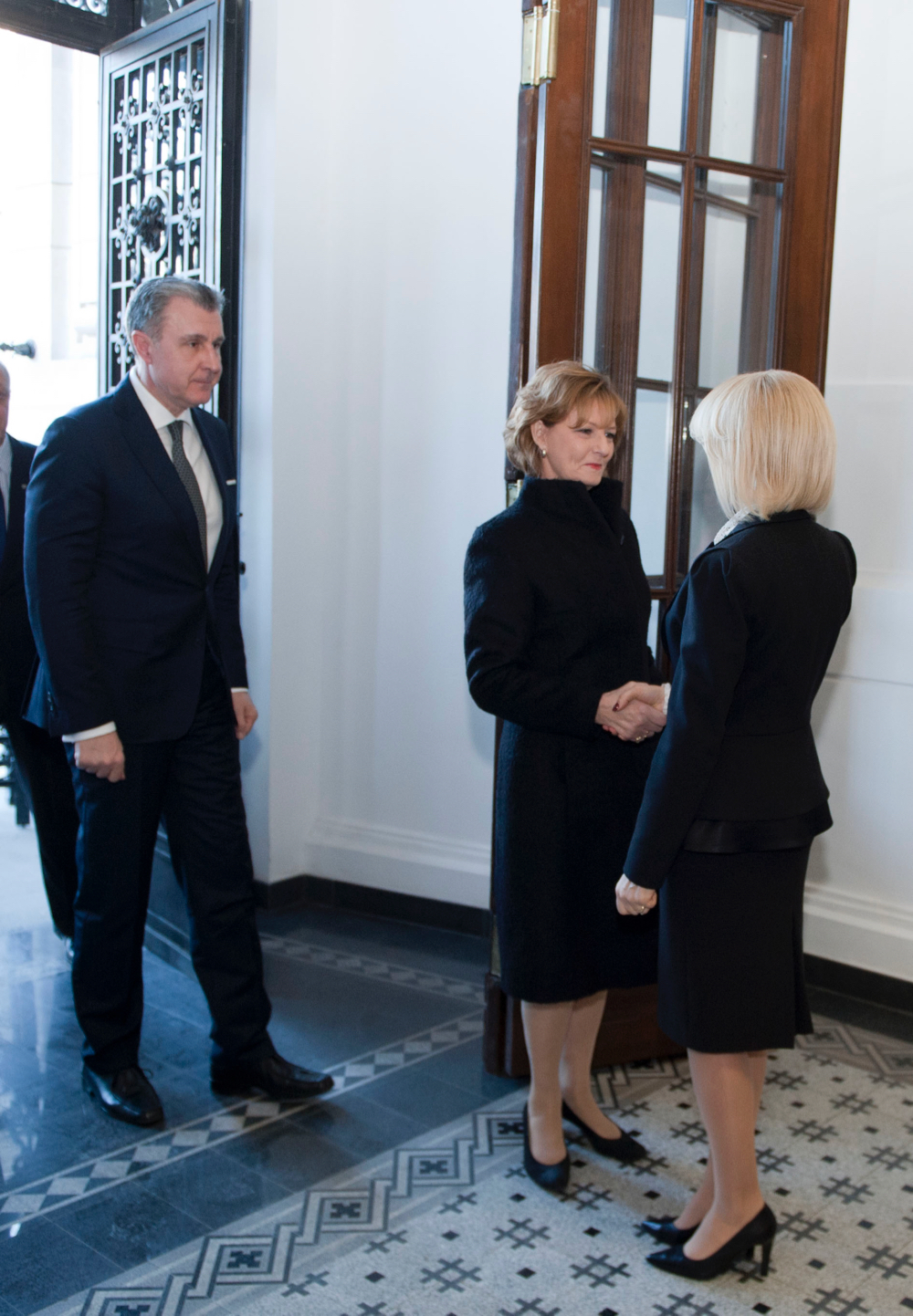 Majestatea Sa Margareta, Custodele Coroanei, și ASR Principele Radu au vizitat astăzi sediul istoric al Primăriei Generale și s-au întâlnit cu angajații primăriei care au avut o contribuție remarcabilă la organizarea și desfășurarea funeraliilor naționale ale Regelui Mihai, cu o lună în urmă. Cuplul regal a fost întâmpinat la intrarea în primărie de doamna primar general, Gabriela Firea. A urmat o vizită a clădirii și a principalelor săli care alcătuiesc interiorul acestui monumental edificiu, ridicat în timpul domniei Regelui Carol I, în anul 1910. Majestatea Sa și Principele Radu au însoțit pe primarul general în sala mare a primăriei, unde s-au întâlnit cu câteva zeci de angajați ai instituției, cărora le-au mulțumit pentru performanța lor profesională și pentru dăruirea cu care au dus la bun sfârșit programul dificil și complex al funeraliilor. Majestatea Sa Margareta și Principele Radu au salutat personal pe fiecare dintre angajații primăriei nominalizați de doamna primar general și au adus felicitări tuturor pentru devotament și fidelitate.